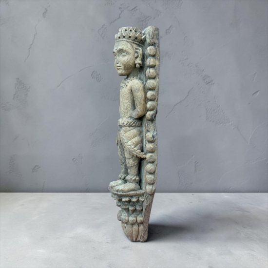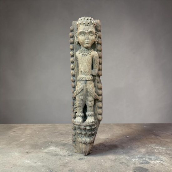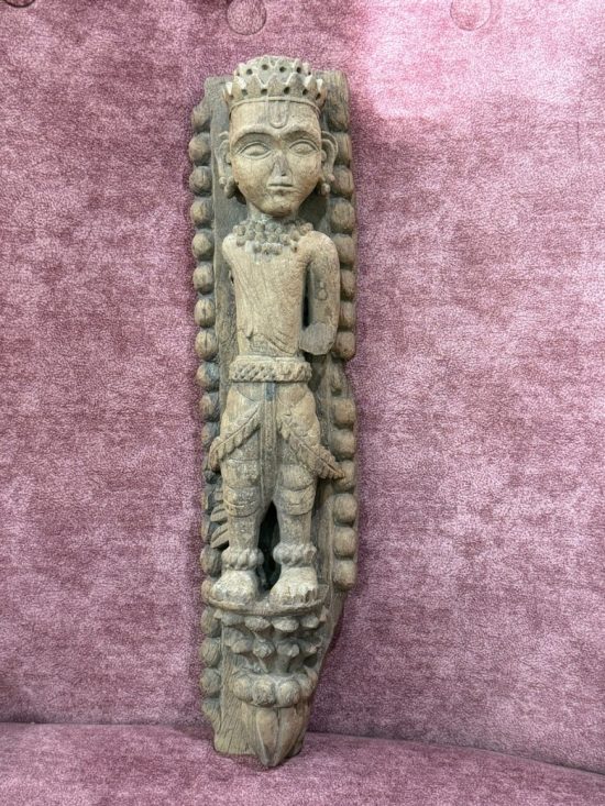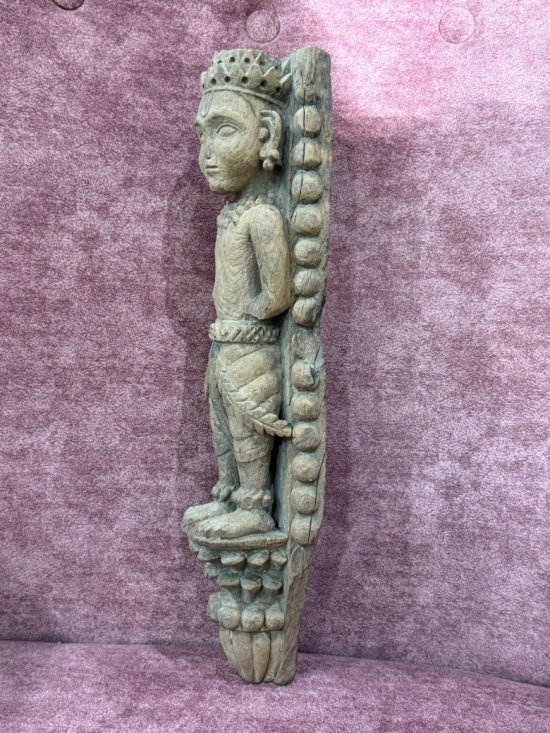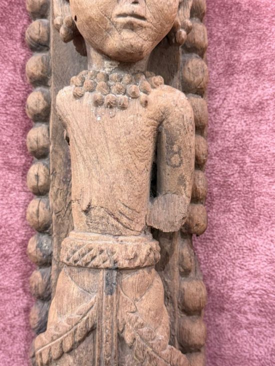 An extraordinary hand-carved wooden sculpture believed to date back approximately 300 years, crafted from solid teak and featuring a highly stylized human/deity figure.