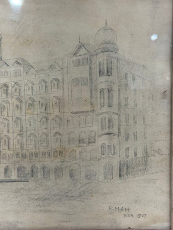 Created in 1907 and signed by RM Art, this original drawing captures the grandeur of one of India’s most celebrated colonial-era landmarks shortly after its inauguration period — making it both an artistic and historical collectible.