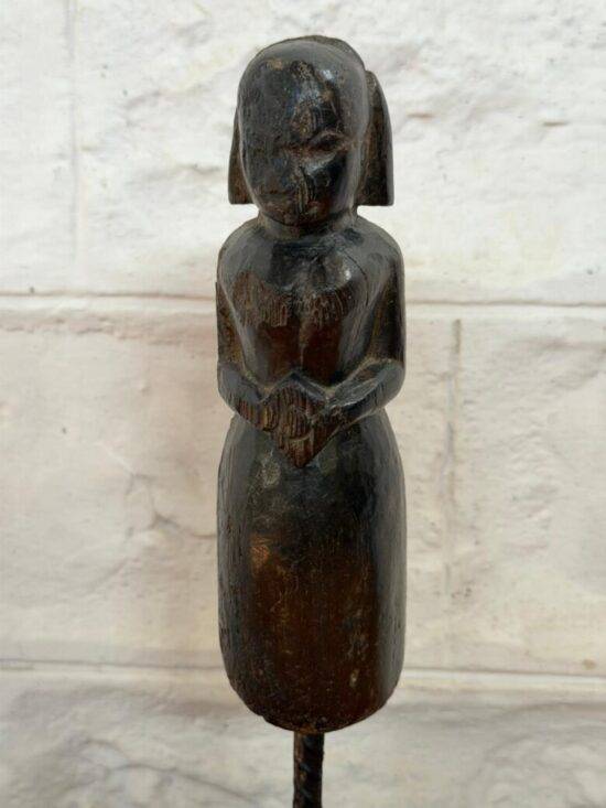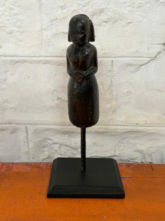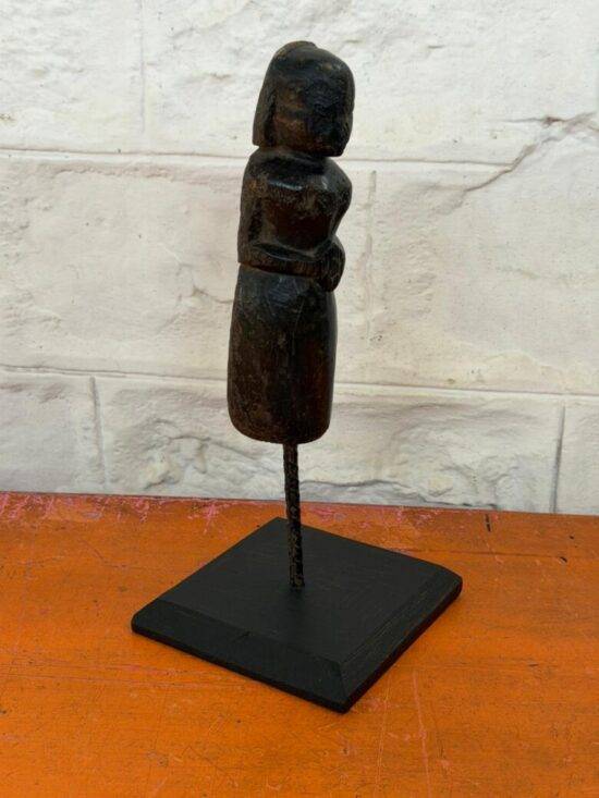 Add a touch of heritage and timeless charm to your home with this authentic 90-year-old hand-carved wooden figure. Crafted in a traditional tribal/folk style, this graceful standing figure holds a serene posture and carries a naturally aged patina that reflects decades of history.