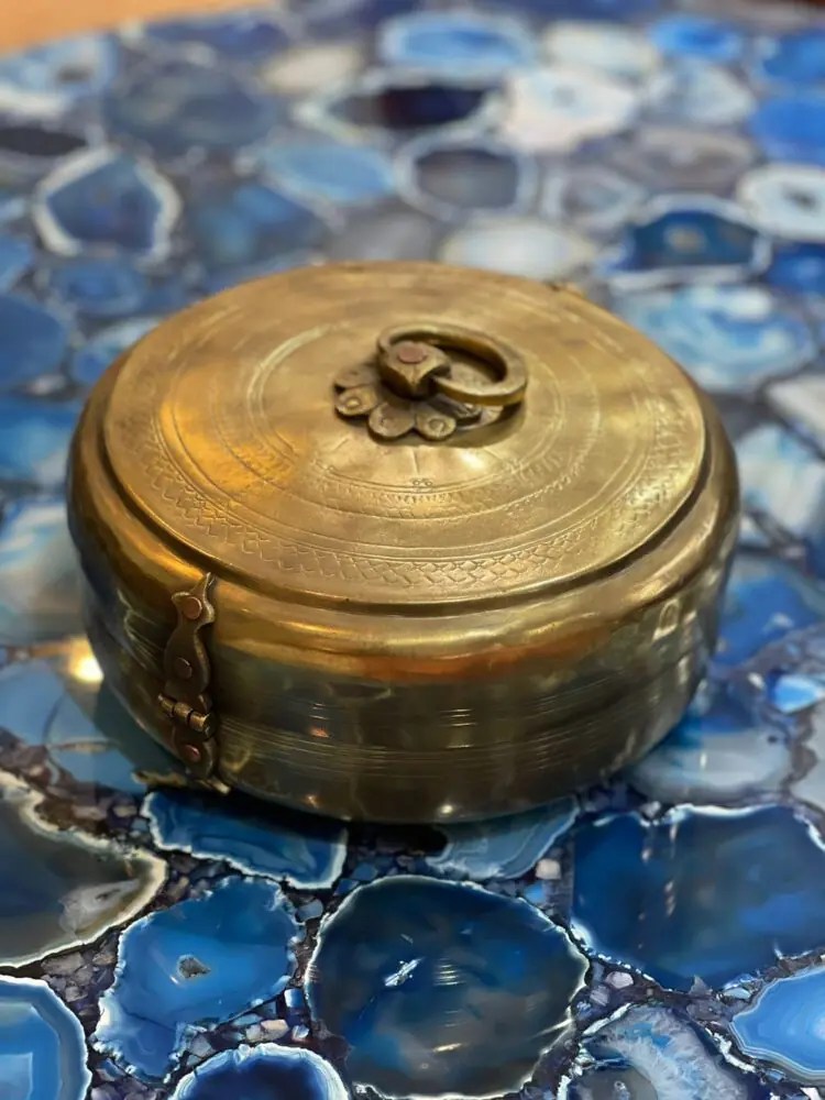 Antique Brass Round Chapati Bread Box Original, Indian Brass Bread Box - Purana Darwaza