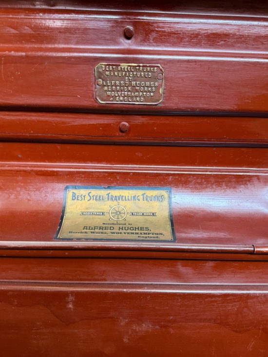 Manufactured by Alfred Hughes, Wolverhampton, this trunk carries authentic branding and heritage value, making it far more desirable than generic vintage boxes. Originally used for travel, it is crafted in durable steel with reinforced edges and original locking hardware, built to withstand long journeys.