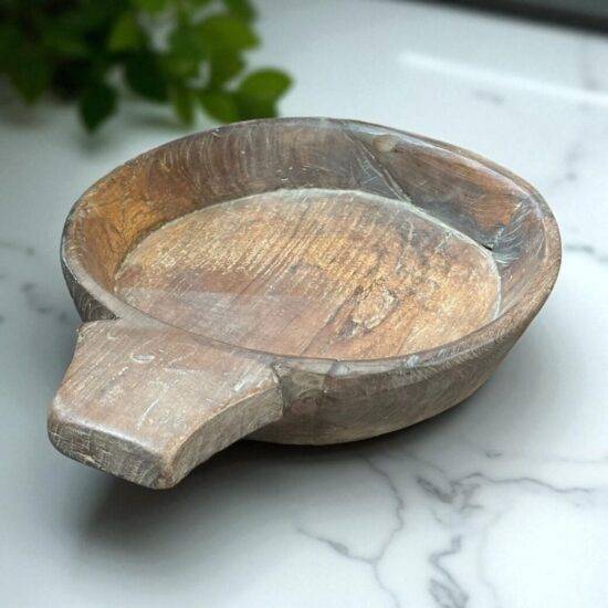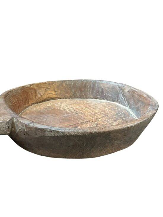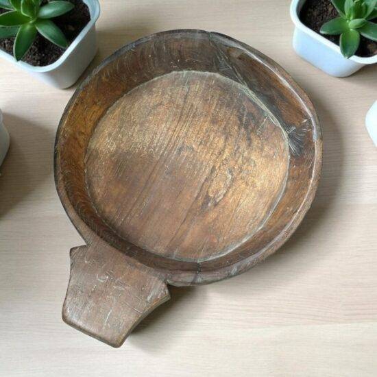 Bring a touch of rustic Indian charm into your space with this Antique Wooden Paraat Plate, a rare find from the 1920s. Traditionally used in Indian households for kneading dough (“aata”), this piece has now become a coveted collectible for decor lovers and antique enthusiasts alike.