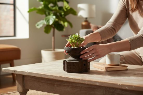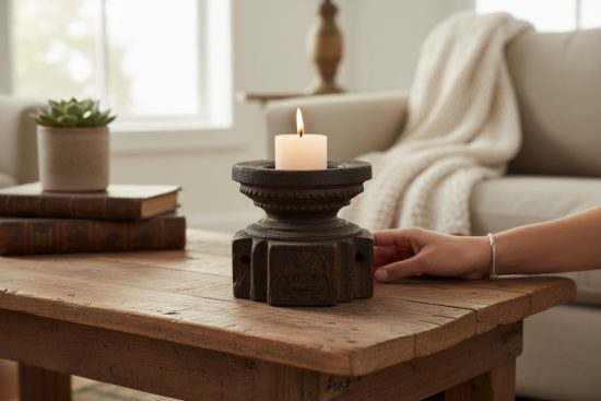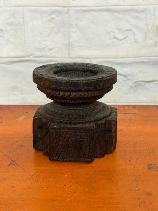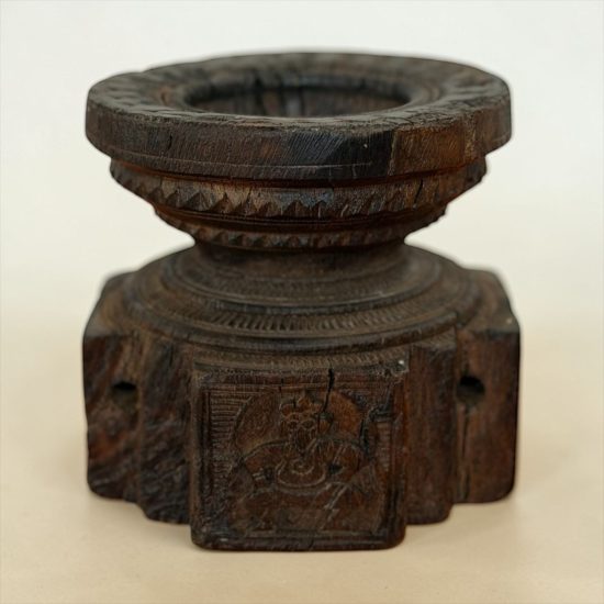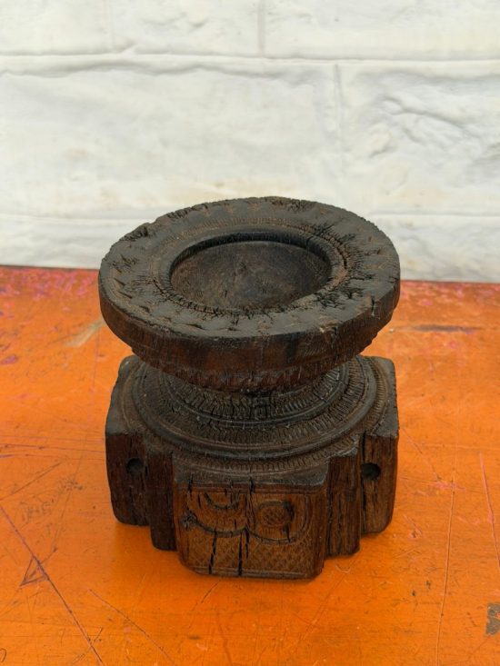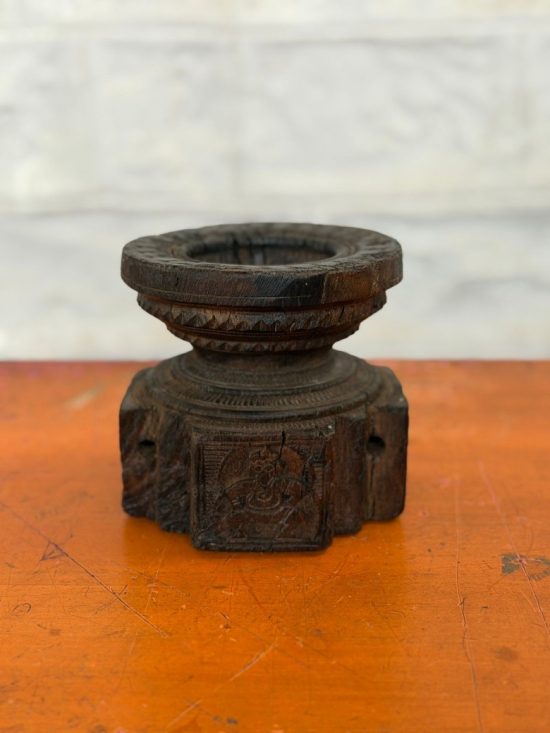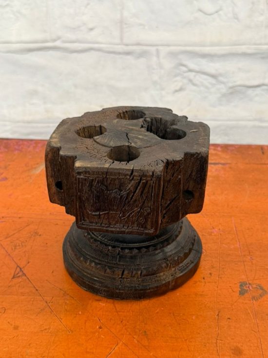 A rare antique wooden grain seeder, traditionally used by farmers to plant seeds in agricultural fields. This handcrafted tool was part of early farming practices where seeds were placed into the carved holes and distributed into the soil during sowing.