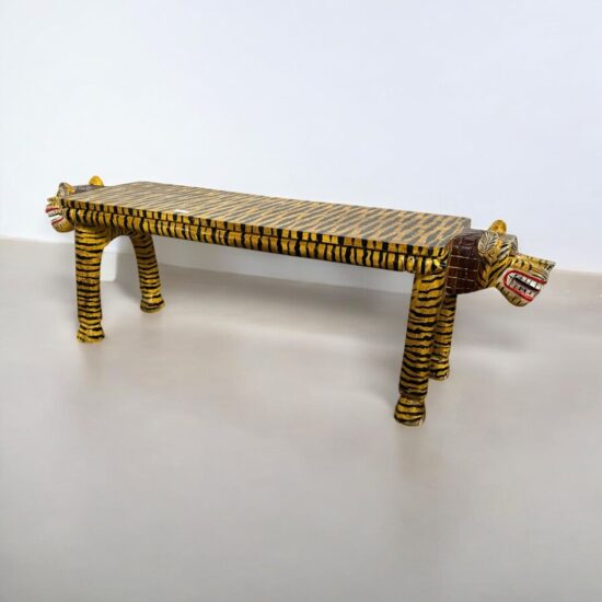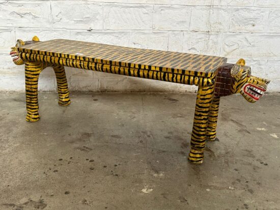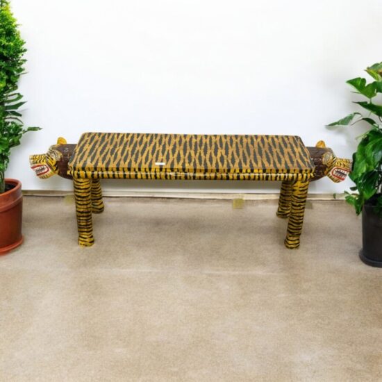 The Tiger Bench is more than a furnishing — it is an emblem of artistry and tradition. Its powerful tiger carvings, vibrant artwork, and sturdy craftsmanship make it a piece to be admired and treasured. Ideal for those who appreciate handmade Indian decor, storytelling through design, and timeless elegance.