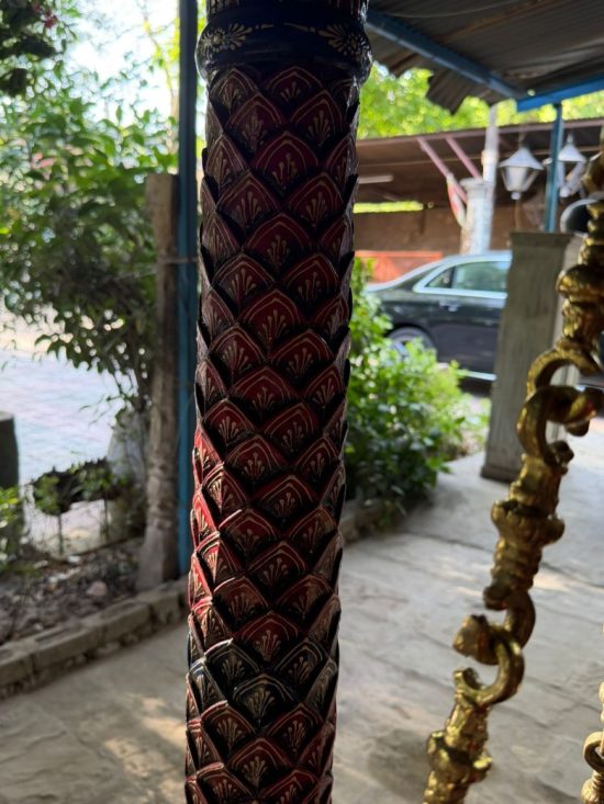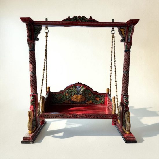 This is a beautiful wooden diwan Swing made by our skilled craftsmen. It has hand-carved designs that give it a royal and traditional look. This diwan is strong, comfortable, and perfect for Indian homes.