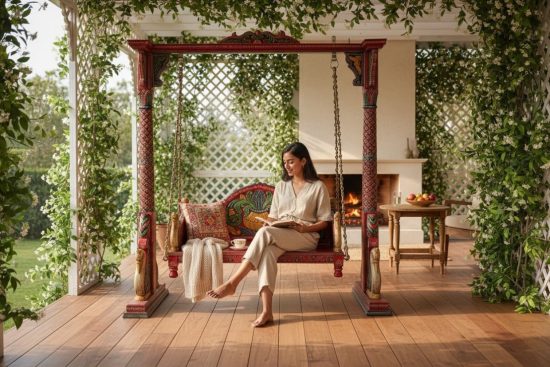 Handmade wooden diwan swing