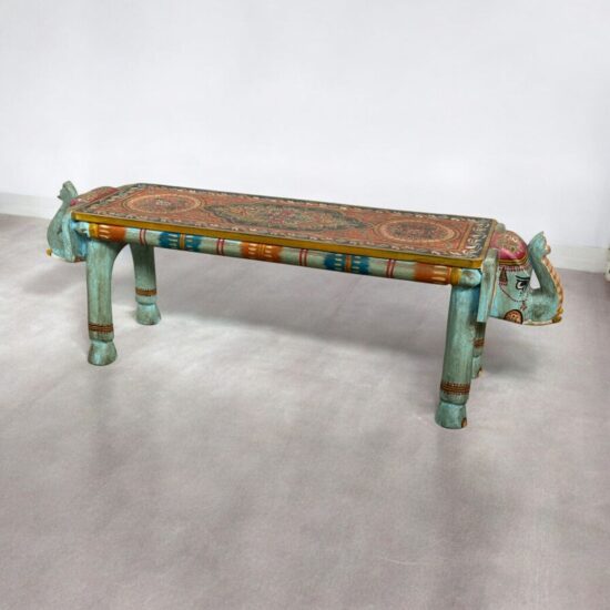 - Artisanal Detailing – Every element, from the delicate paintwork to the finely sculpted elephants, showcases the skill of master artisans. This handcrafted bench carries a unique charm, with each piece having slight variations that add to its authenticity.