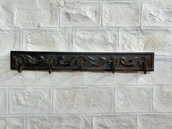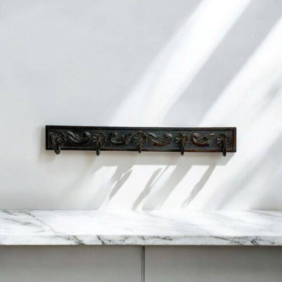 Fitted with five durable iron hooks, this wall-mounted piece is perfect for hanging everyday essentials like keys, hats, scarves, or even kitchen towels. Whether placed in an entryway, hallway, kitchen, or dressing area, it adds a touch of rustic elegance while keeping your space beautifully organized.