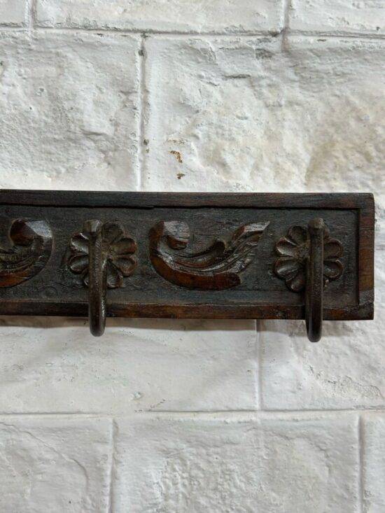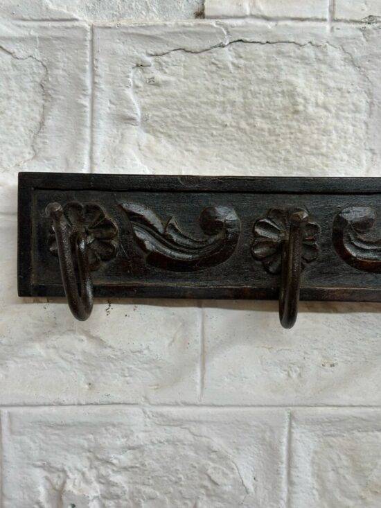 Elevate your wall decor with the vintage charm of the Cuttak Hooks Wall Panel, a piece that marries old-world artistry with modern-day utility. Handcrafted from solid wood, this panel features intricate floral and scroll carvings inspired by traditional Indian craftsmanship, highlighted by a rich, aged finish that brings warmth and character to any space.
