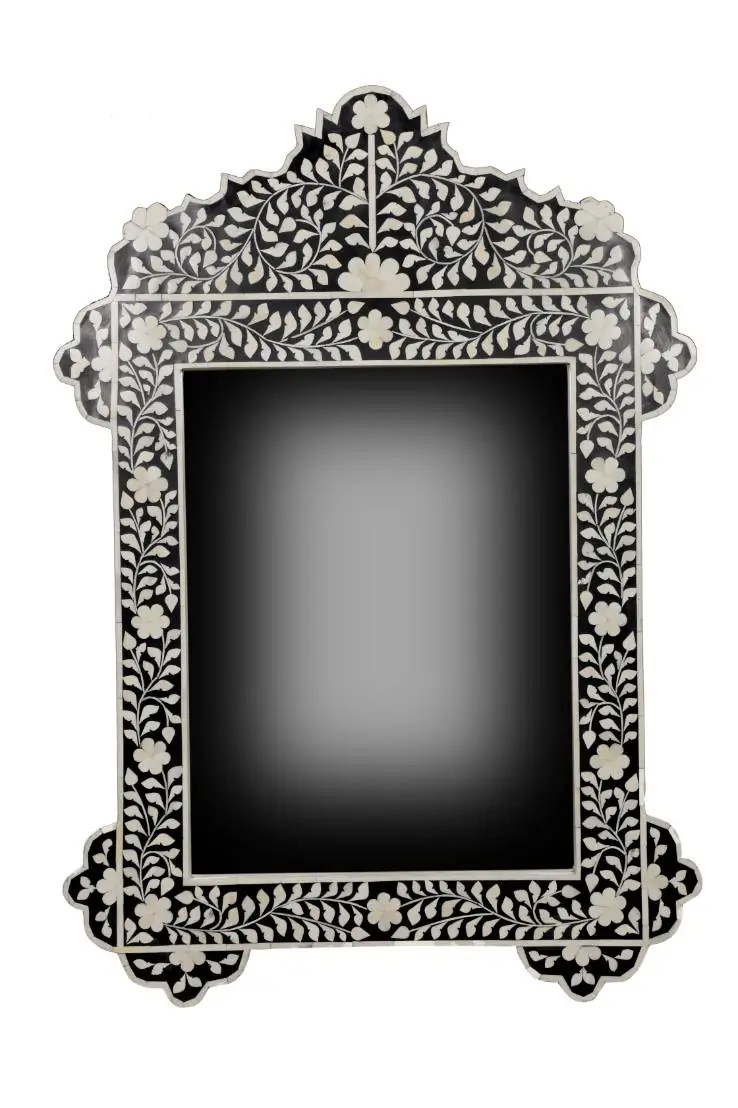 Our Dante mirror is made in solid wood and is inlaid with ethically sourced animal bone pieces and is finished in a beautiful grey finish. These can be used as bathroom, vanity, bedroom or even as living room mirrors.
