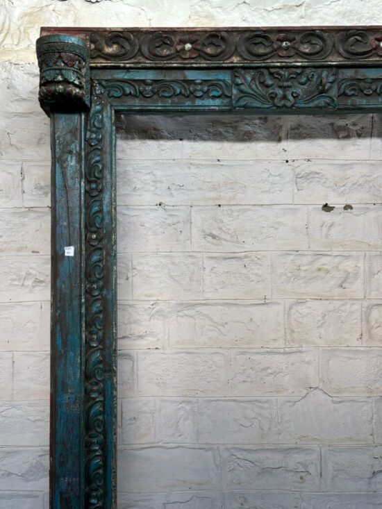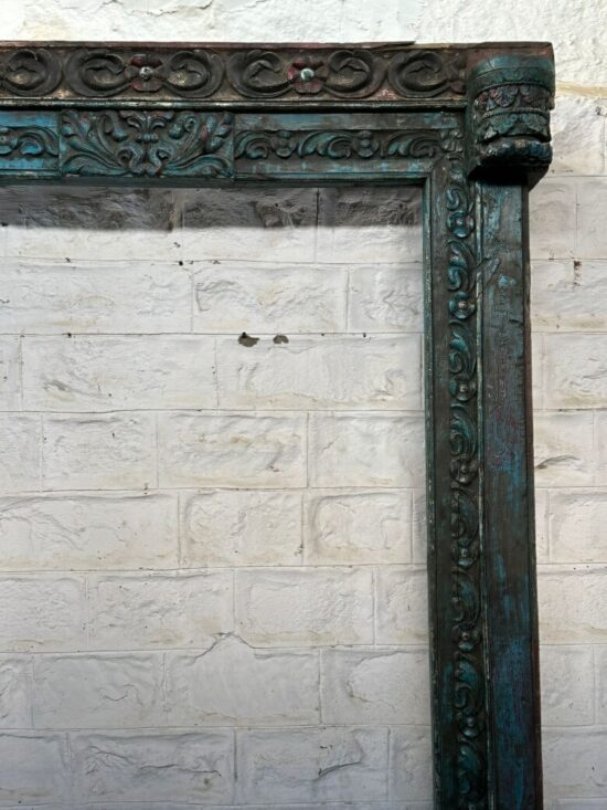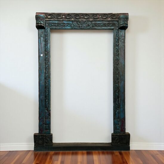 Introduce a touch of grandeur into your home with this Devishka Vintage Life Size Frame, a rare 90-year-old architectural masterpiece from India. Hand-carved from solid wood, this antique frame features intricate detailing and a deep patina that reflects its age and heritage.