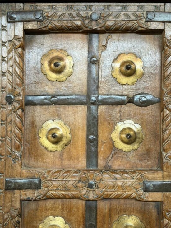 Museum-Quality Antique Teak & Brass Haveli Door