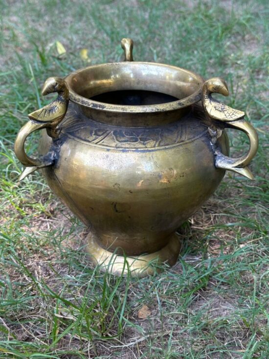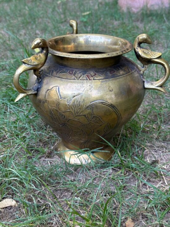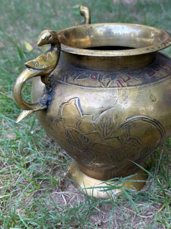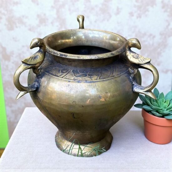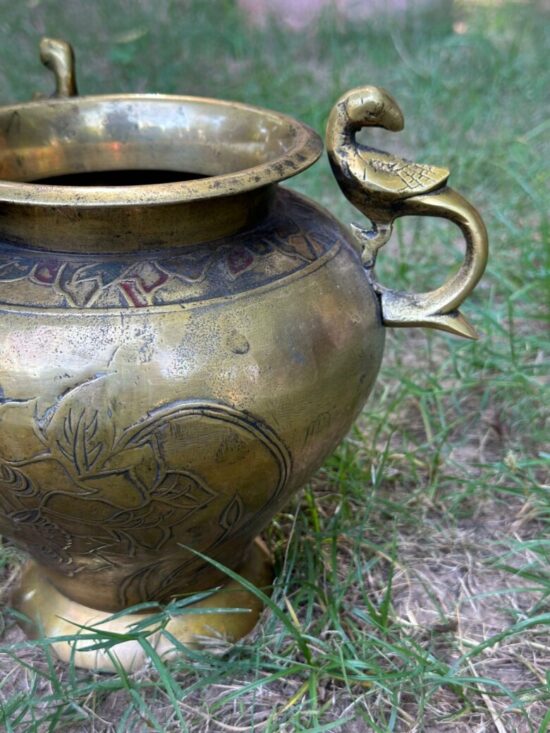 Bring home the elegance of traditional Indian craftsmanship with this Vintage Brass Pot Planter featuring exquisite peacock-shaped handles and detailed hand-engraved motifs. Originally used as a water pot, this piece has now become a versatile collectible that can be repurposed as a planter, centerpiece, or decorative accent.