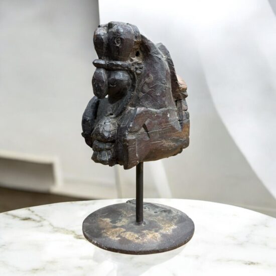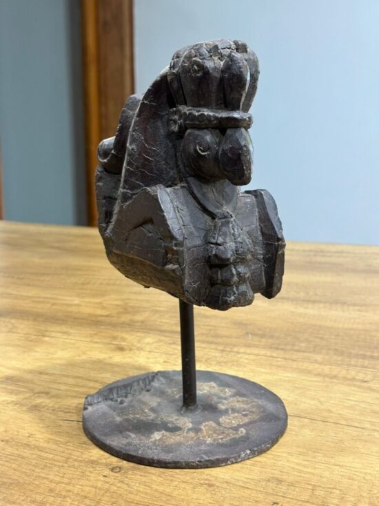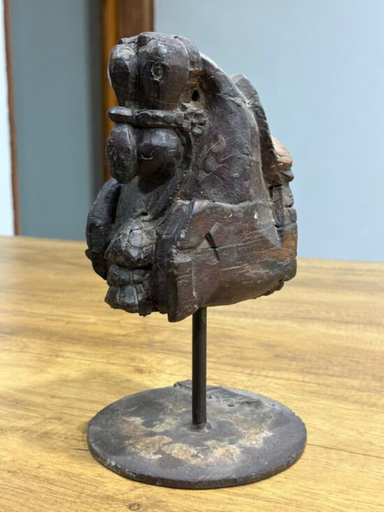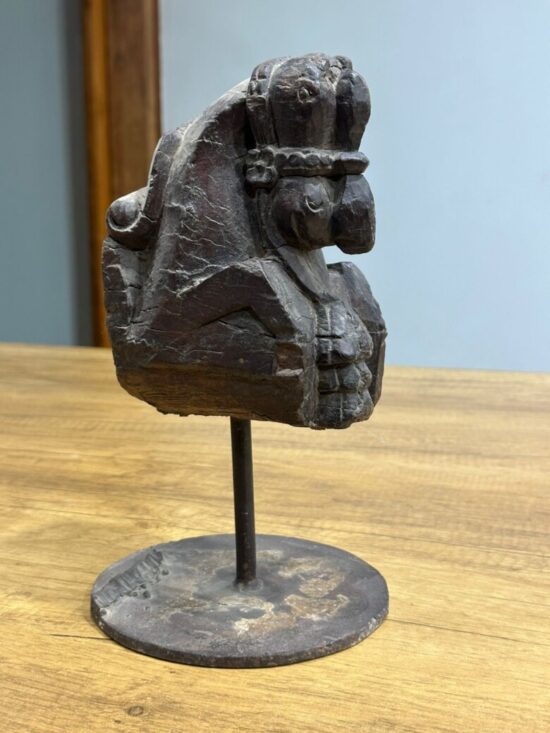 The carving showcases beautiful horse motif, meticulously hand-carved with remarkable precision. The detailed craftsmanship reflects the artistry of skilled artisans from the past, making it a true collector’s piece. The natural aging process has given the wood a rich, dark patina, adding depth and authenticity to its appearance. Mounted on a sturdy metal stand, this piece is ideal as a decorative accent for bookshelves, desks, or console tables.