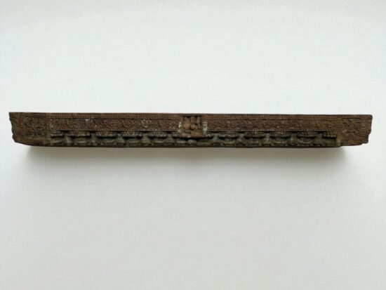 At its heart lies a finely detailed carving of Lord Ganesha — the remover of obstacles and symbol of new beginnings. Intricate floral and lattice patterns flank the deity, showcasing the artisan’s mastery and devotion.