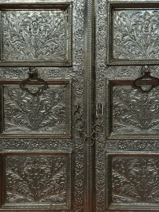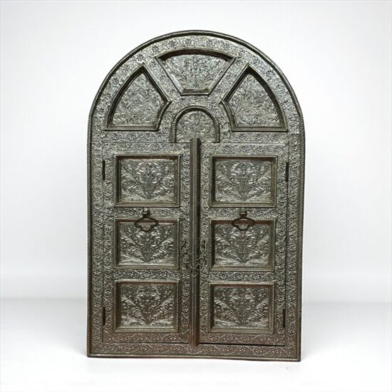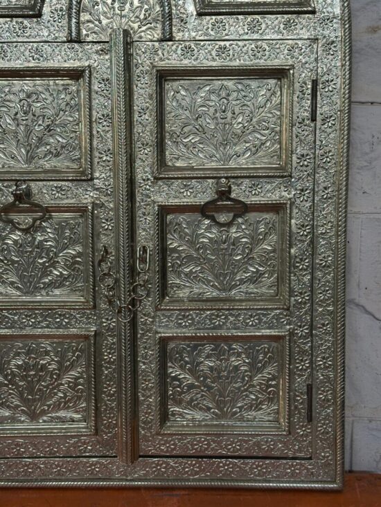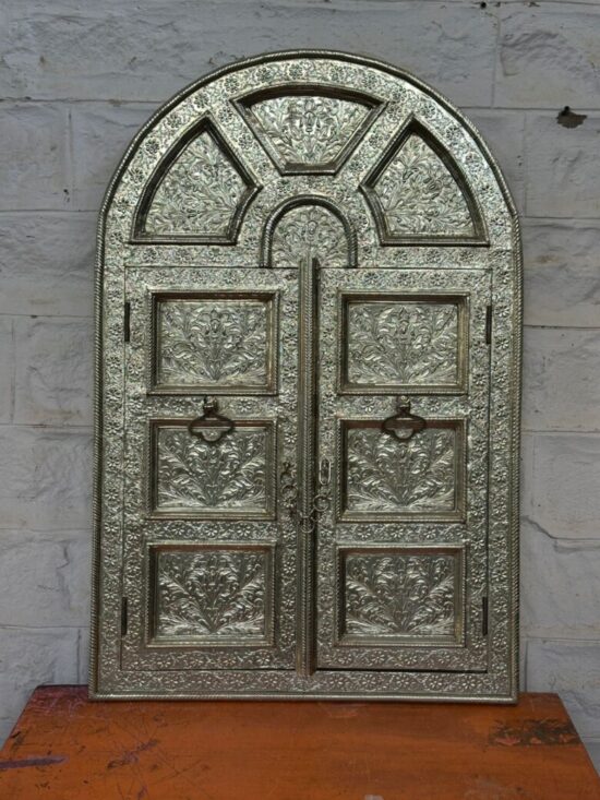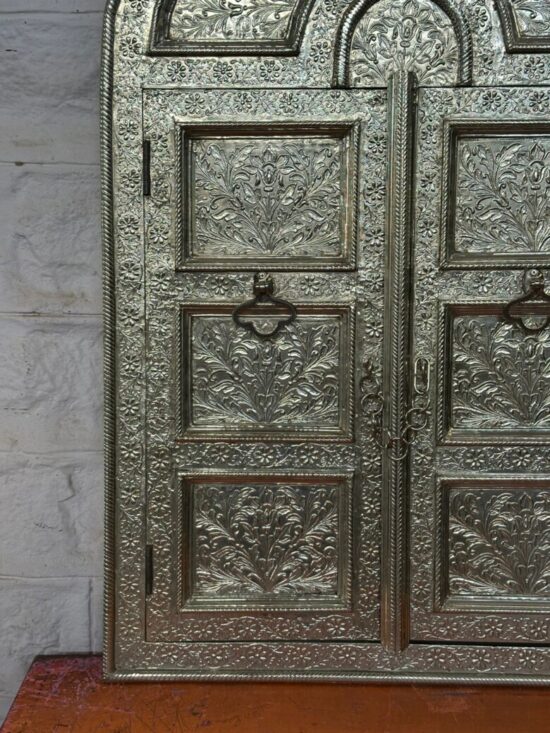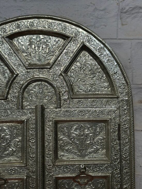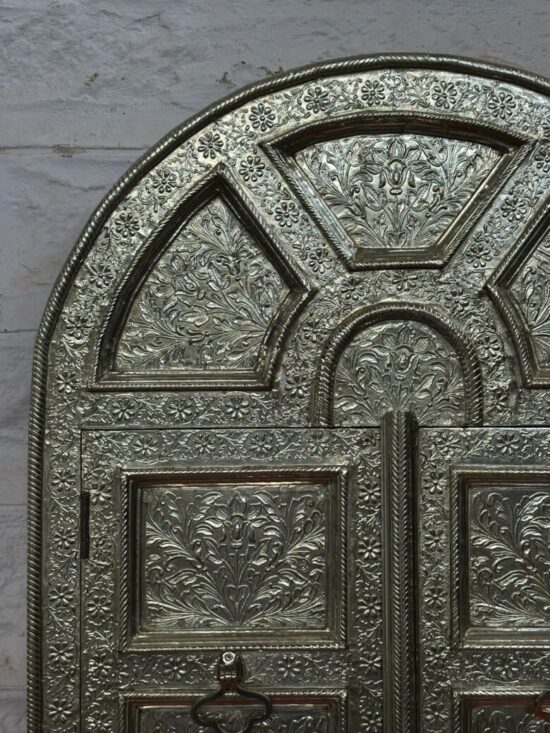 With its detailed silver embossing and rich patina, this piece embodies cultural artistry and timeless appeal. It can be styled as a wall panel, headboard accent, or even a statement mirror frame, adding antique character to any interior.
