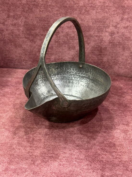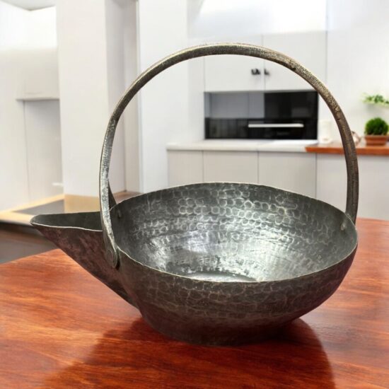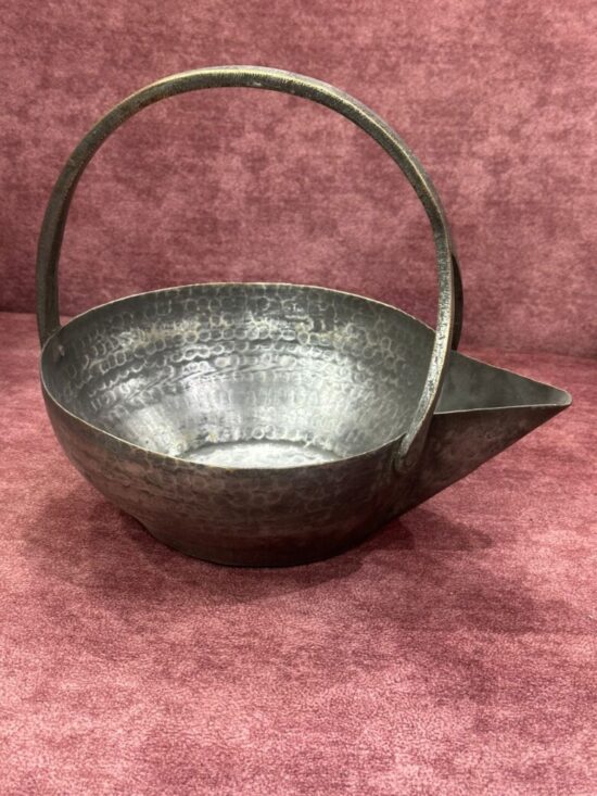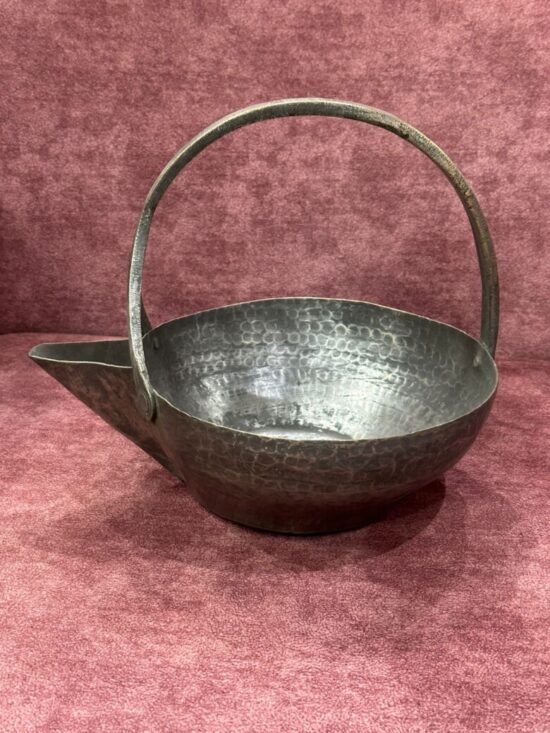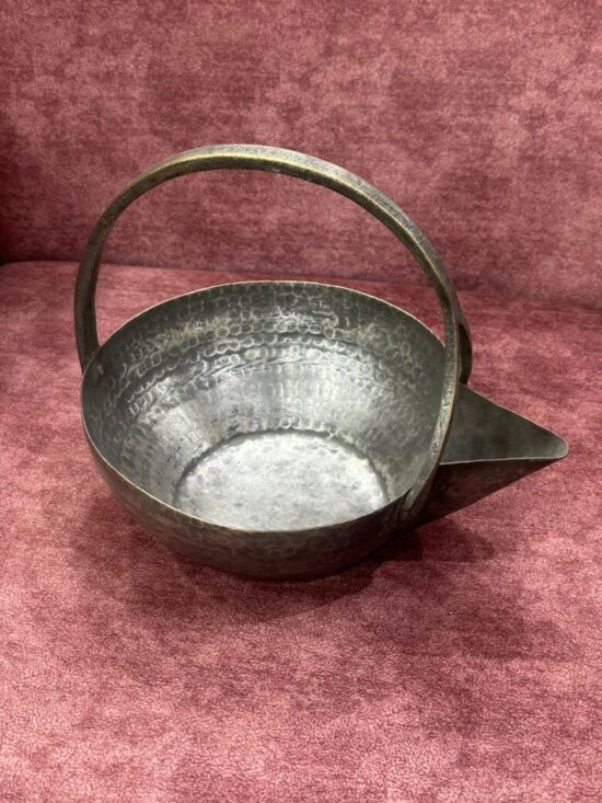 Design: Hand-hammered texture with sturdy handle and spout
