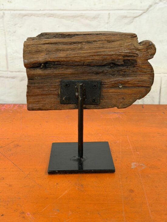 Material: Vintage teak wood with custom iron stand