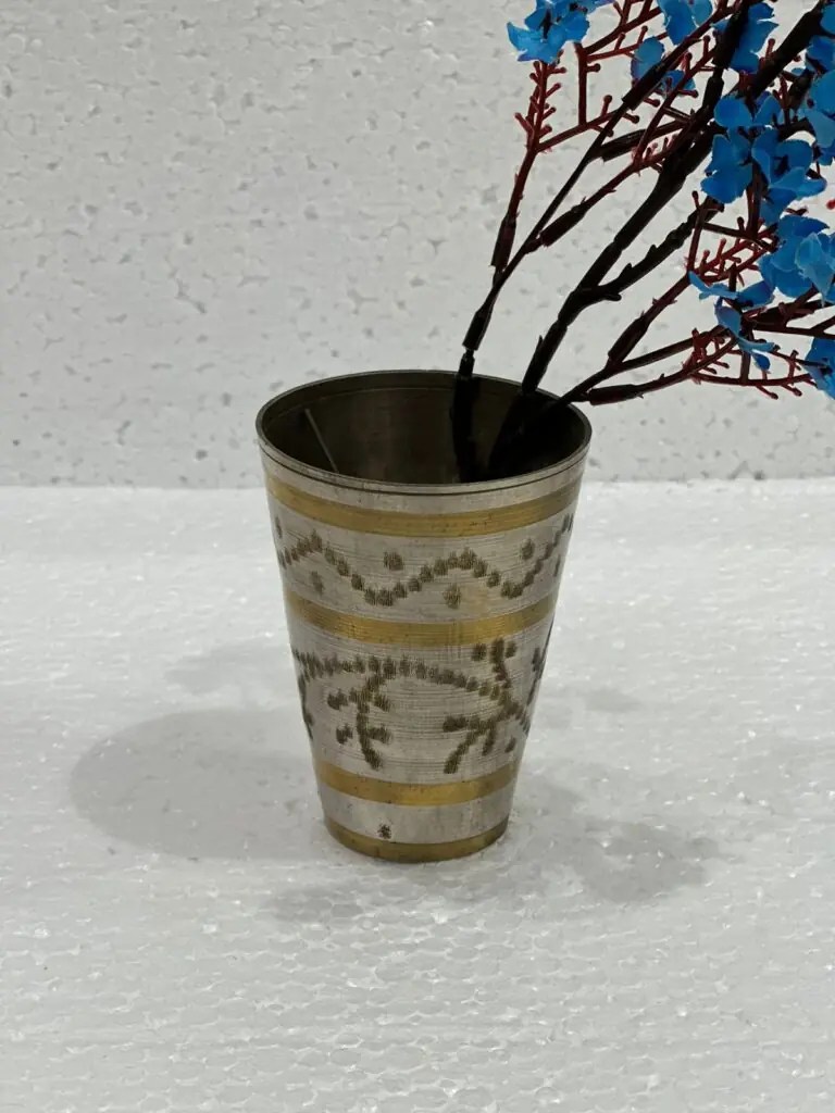 A Glimpse into the Past: Step back in time with this remarkable vintage brass lassi glass from Punjab, a timeless treasure that carries the essence of tradition and history. This beautifully crafted piece, dating back 70 years, is a testament to the rich heritage of the region.