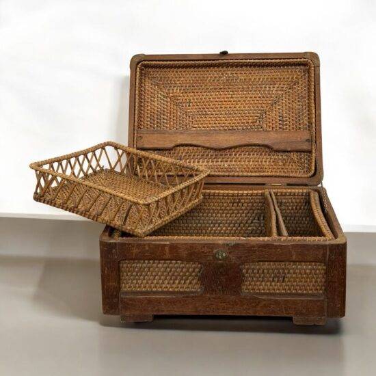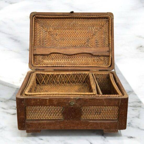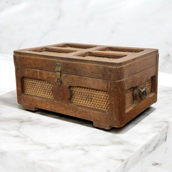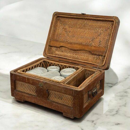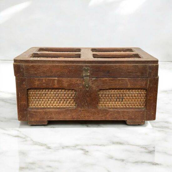 The Kosa Antique Picnic Basket is a rare and charming collectible that beautifully blends functionality with heritage. Handcrafted from solid teak wood and skillfully woven cane, this basket reflects the rustic elegance of a bygone era. Once used to carry food, drinks, or essentials for family outings and picnics, it now serves as a timeless piece of decor.