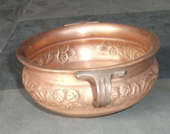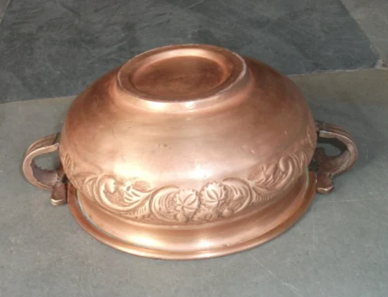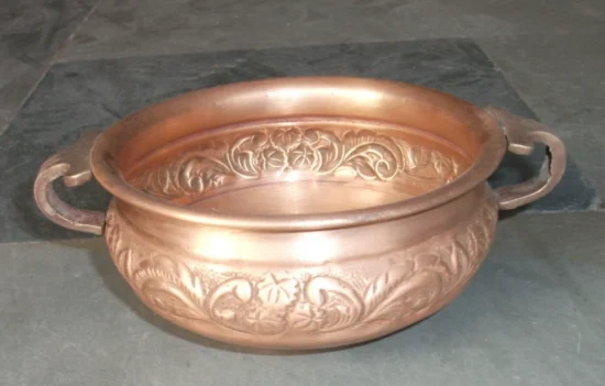 Vintage Copper Urli Bowl – 60 to 70 Years Old – Handcrafted Embossed Indian Uruli for Floating Flowers