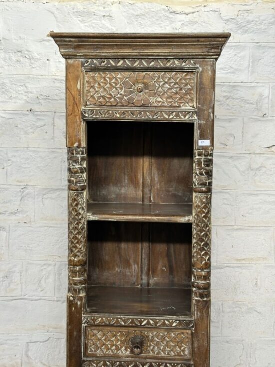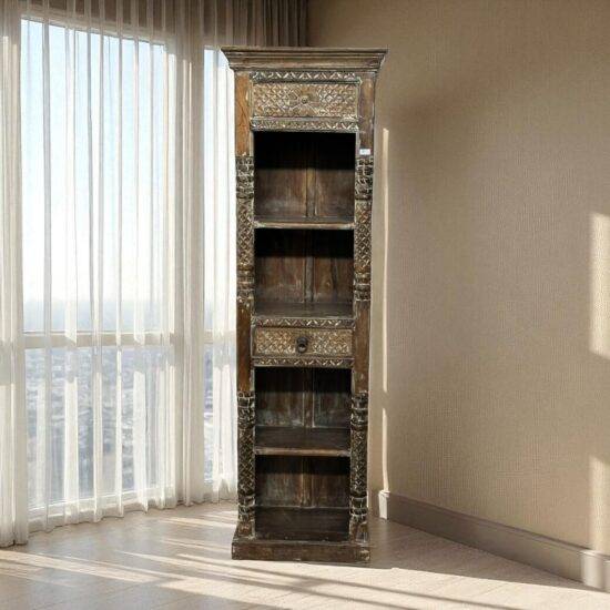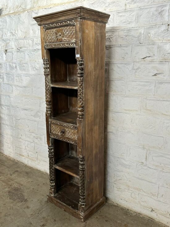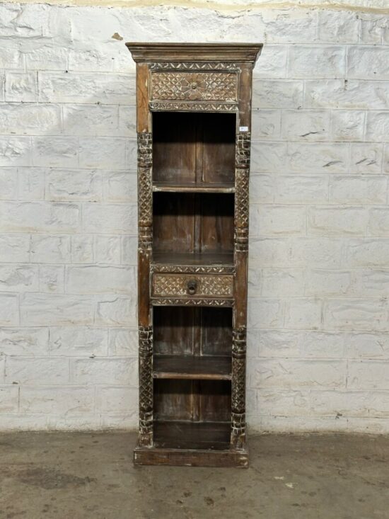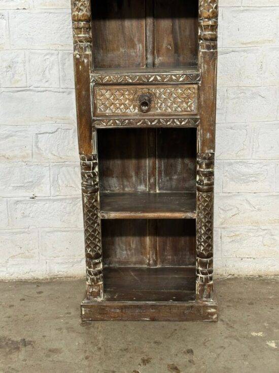 Perfect for displaying books, collectibles, or decor accents, this vintage bookshelf adds a touch of heritage and sophistication to living rooms, bedrooms, hallways, or study spaces. A wonderful addition for lovers of antique Indian furniture and collectors of unique, handcrafted home pieces.