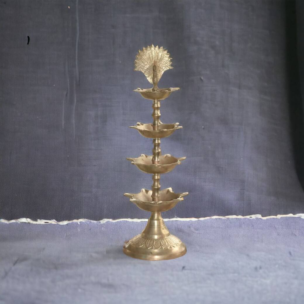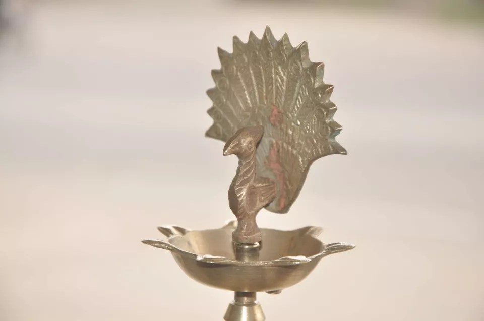 Timeless Design and Craftsmanship: This oil lamp features a stunning peacock perched atop, showcasing the artisan’s skill and attention to detail. The peacock, a symbol of beauty and grace, adds a touch of elegance to the lamp. The intricate design and solid brass construction ensure its durability and timeless appeal.