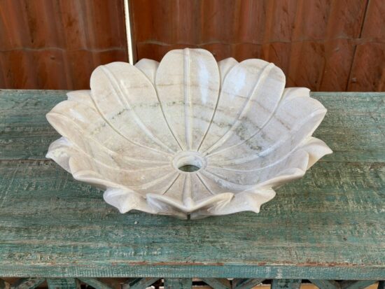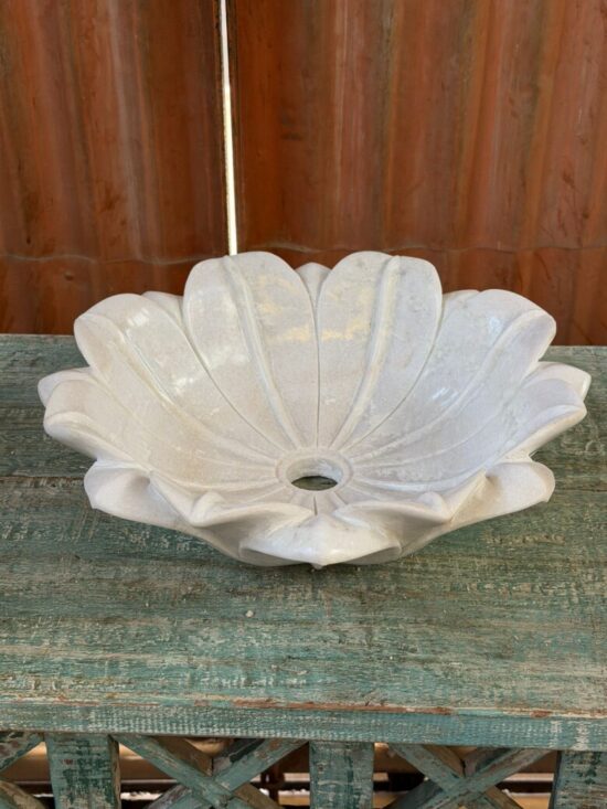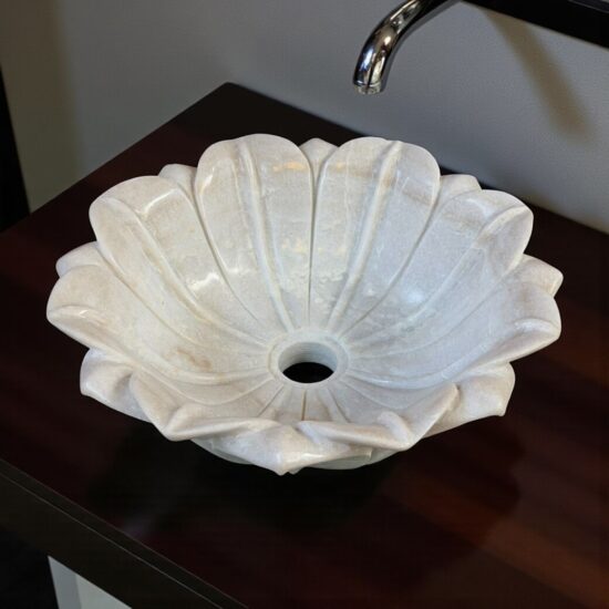 Elevate your bathroom into a sanctuary of luxury with our exquisite White Marble Floral-Shaped Wash Basin – where artistry meets function. Hand-carved from pristine white marble, stands 5 inches tall, making it a statement of refined elegance and craftsmanship.
