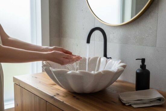 Floral Carving: Delicately sculpted petals form a graceful bloom, turning a daily utility into an artistic centerpiece.
