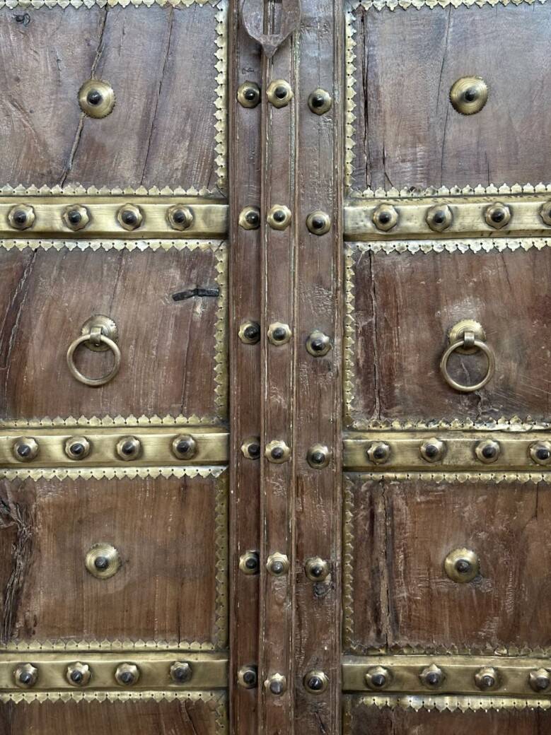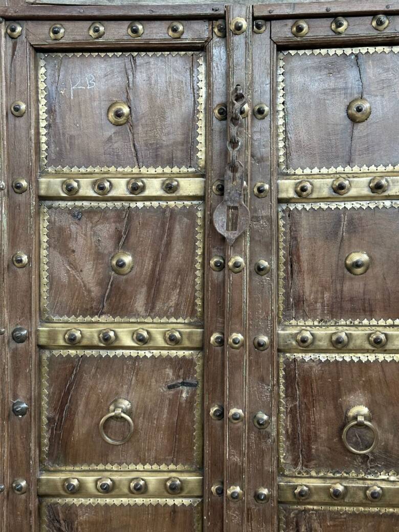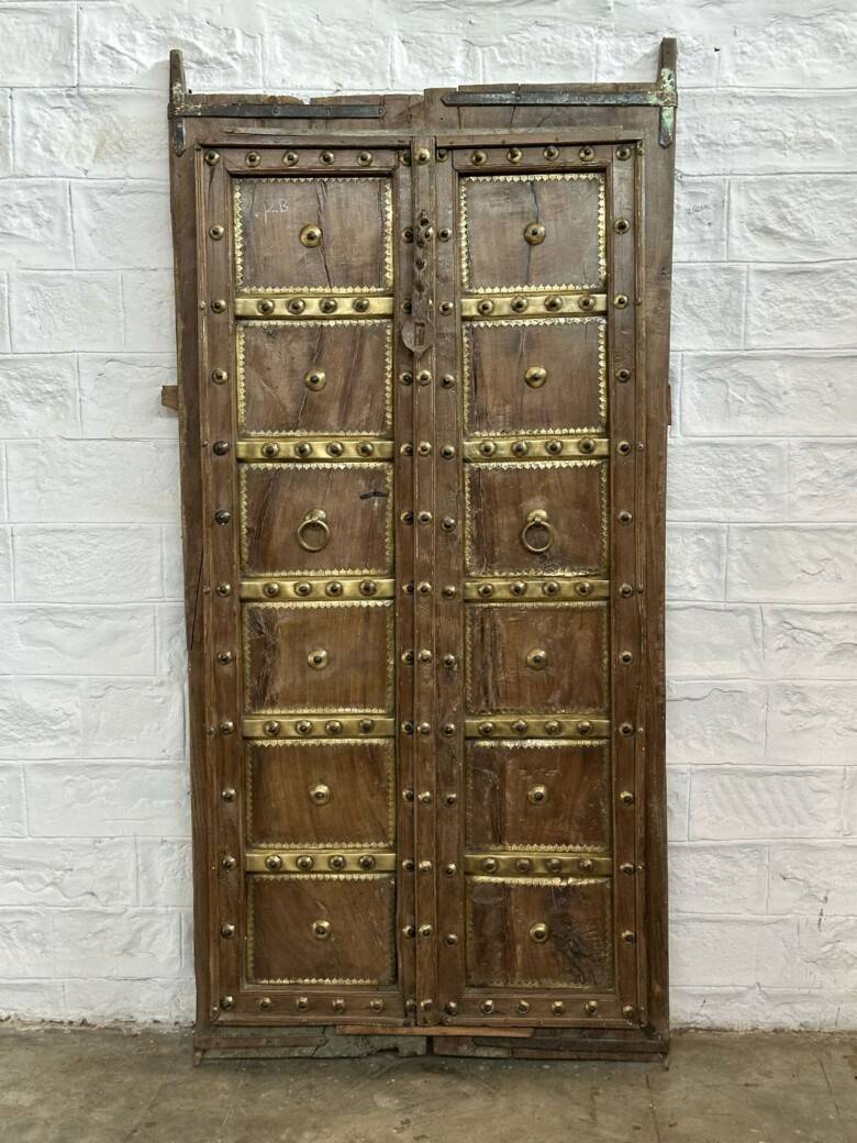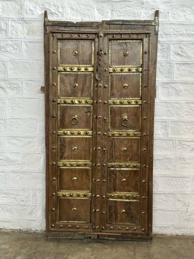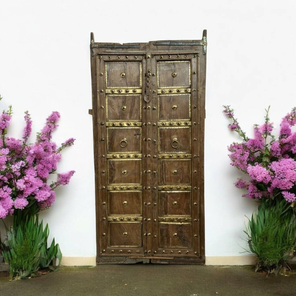 Perfect for those who appreciate antique craftsmanship, this door is not just a functional piece but a work of art that tells a story of tradition, heritage, and elegance. Whether repurposed as an entrance door, decorative wall piece, or partition, the Nithin Vintage Teak and Brass Door is a timeless addition to any sophisticated space.