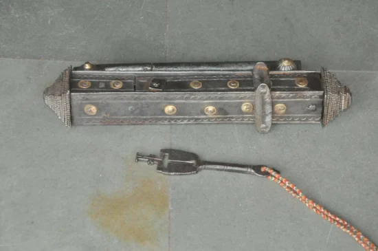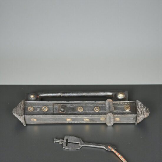 Locks of this elongated strip form were never mass produced and were typically commissioned for large chests, temple doors, and secure storage. Most surviving examples today are either non-functional, incomplete, or heavily restored. Finding one in original working condition is now extremely uncommon.