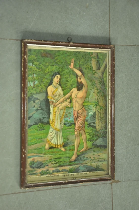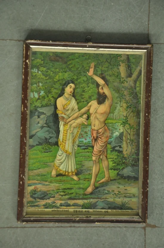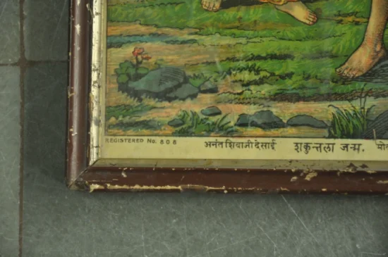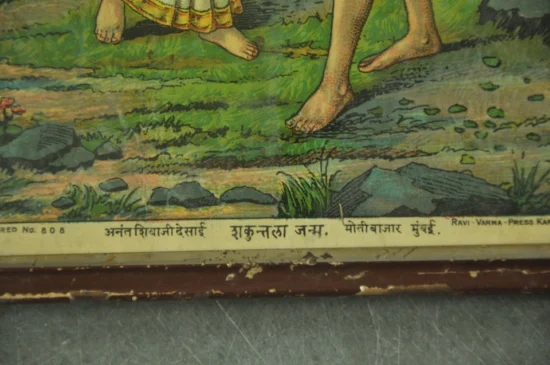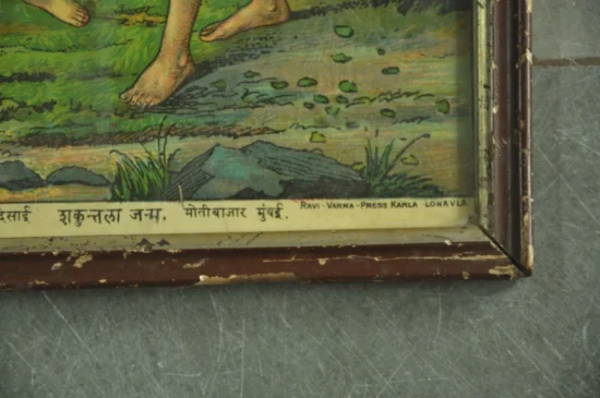 Vintage Wooden Framed Sakuntala Janam Ravi Varma Litho Print