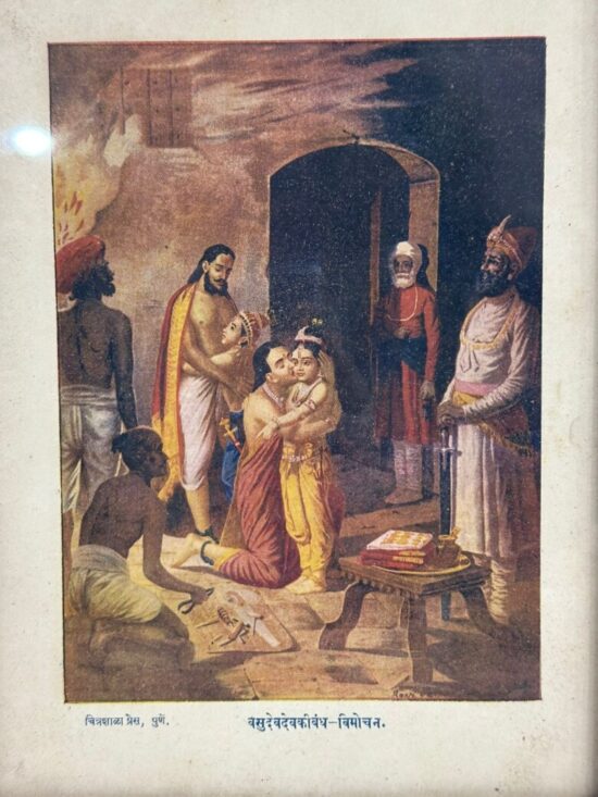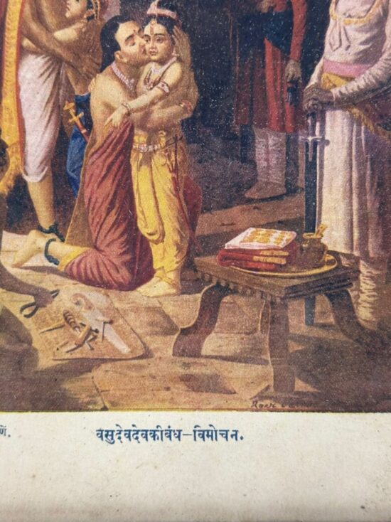 Original Raja Ravi Varma lithograph – “Vasudeva Devakibandh Vimochan”