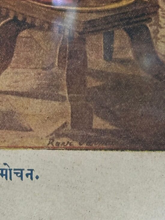 This piece represents a rare surviving example of Raja Ravi Varma’s early chromolithographic work, created in collaboration with one of India’s pioneering printing presses. A true collectible, it bridges the gap between fine art and cultural legacy.