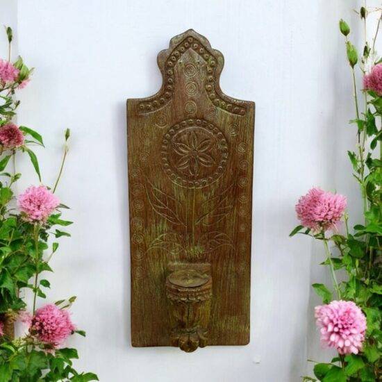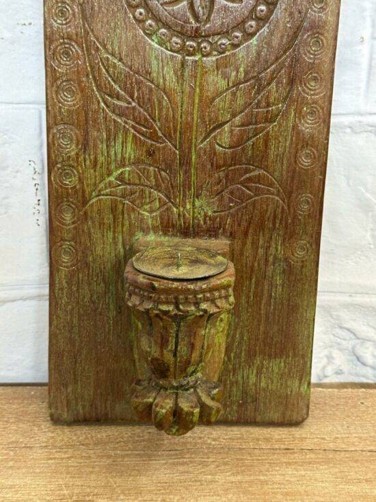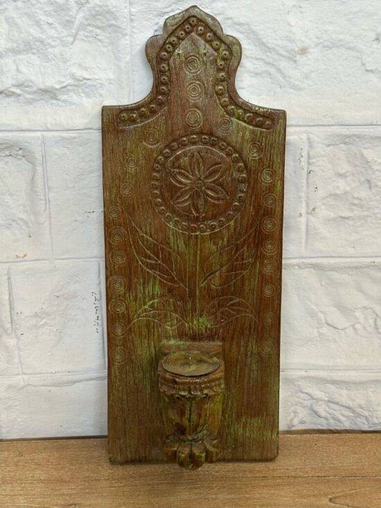 Add a touch of heritage and warmth to your living space with the Prerna Vintage Teak Wall Candle Holder, a timeless piece of handcrafted art that blends rustic charm with cultural elegance. This unique wall-mounted holder is carved from old teak wood, known for its strength, natural weather resistance, and the rich patina it develops over time.