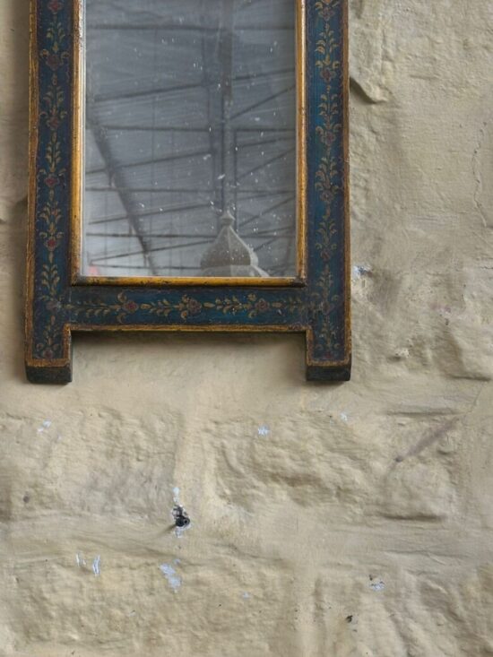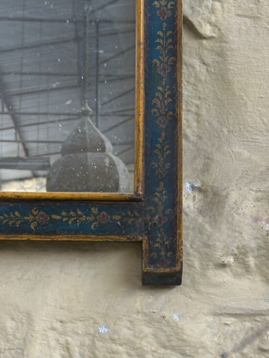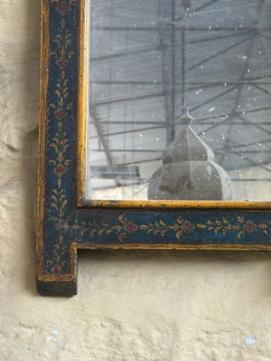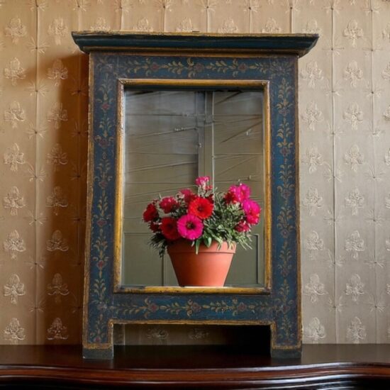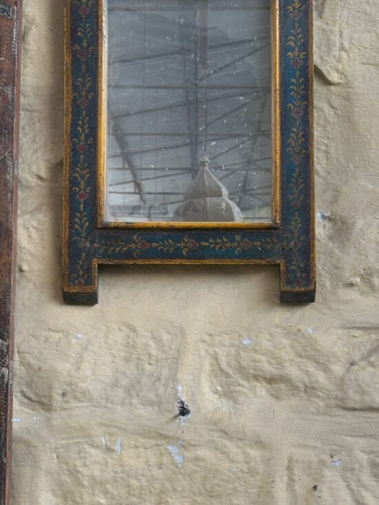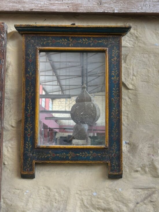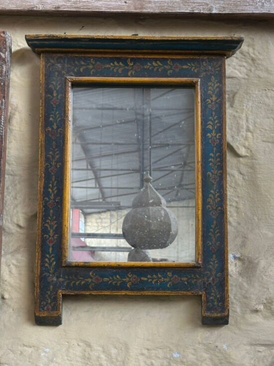 This Vintage Hand Painted Indian Mirror Frame is a beautiful collectible, crafted with traditional floral motifs and intricate detailing. The wooden frame is hand-painted with rich colors, making it a striking piece of Indian artistry and craftsmanship.