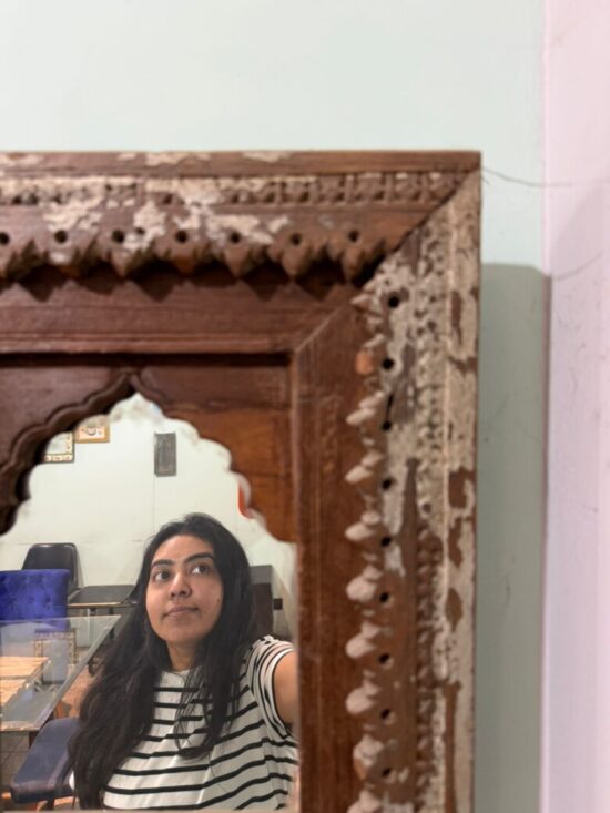 Vintage Hand Carved Indian Mirror Frame – Rare Antique Teak Wood Mirror for Wall or Tabletop Display