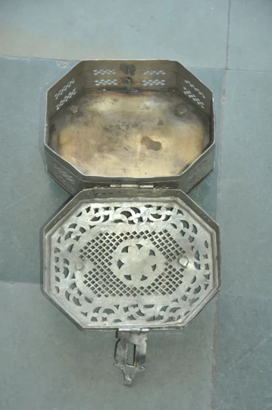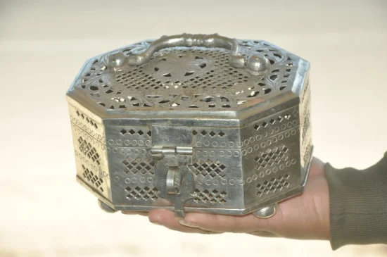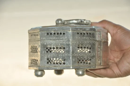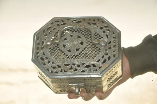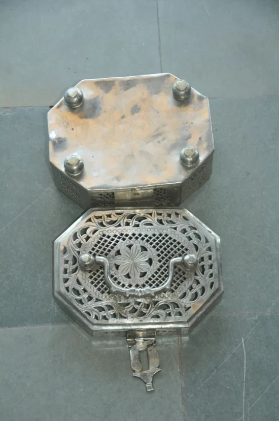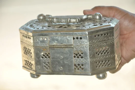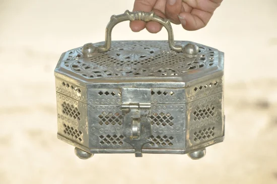 Traditionally used to store betel nuts, spices, or paan essentials, boxes like these were an essential part of Indian households and social rituals. The detailed hand-pierced lattice work allows airflow while adding an elegant decorative touch.