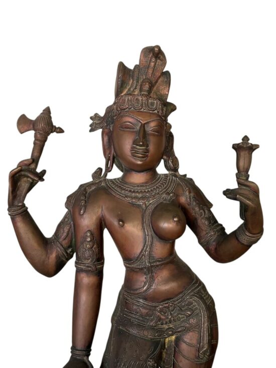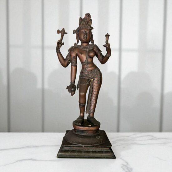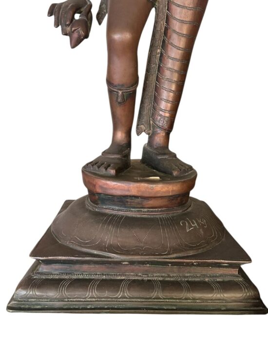 Crafted decades ago, this statue is not just a spiritual icon but also a piece of Indian heritage art. The aged copper patina adds depth and character, enhancing its antique value and timeless presence.
