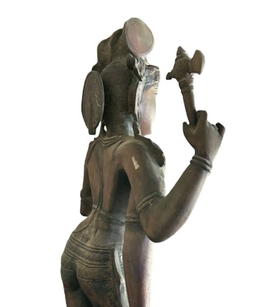 This extraordinary piece symbolizes the union of Lord Shiva and Goddess Parvati—the masculine and feminine forces of the universe merged into one form. Ardhanarishvara is a revered deity in Hinduism representing cosmic harmony, wholeness, and duality in unity.