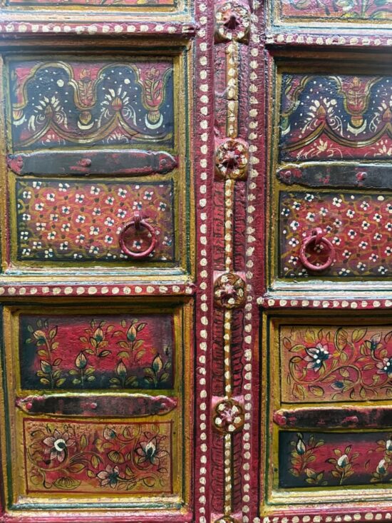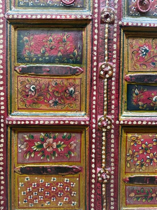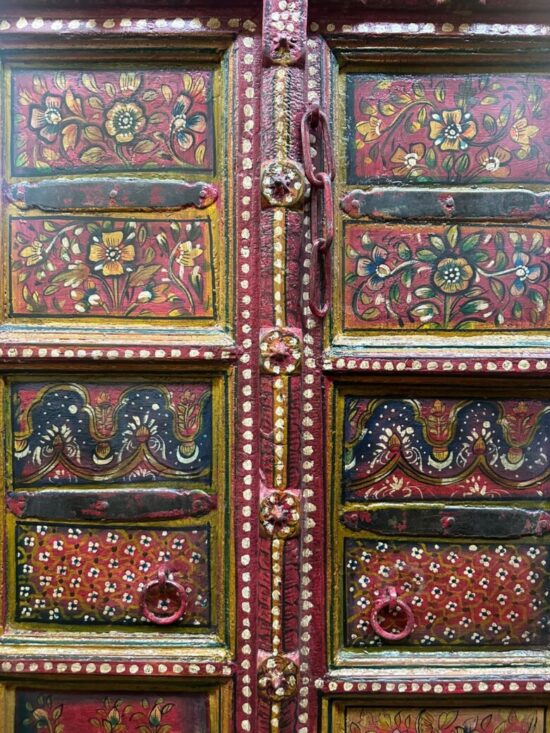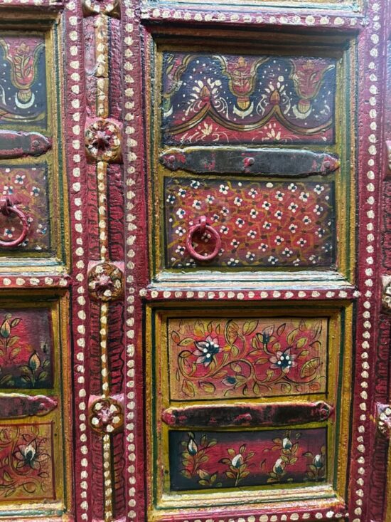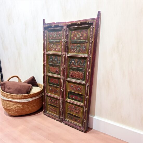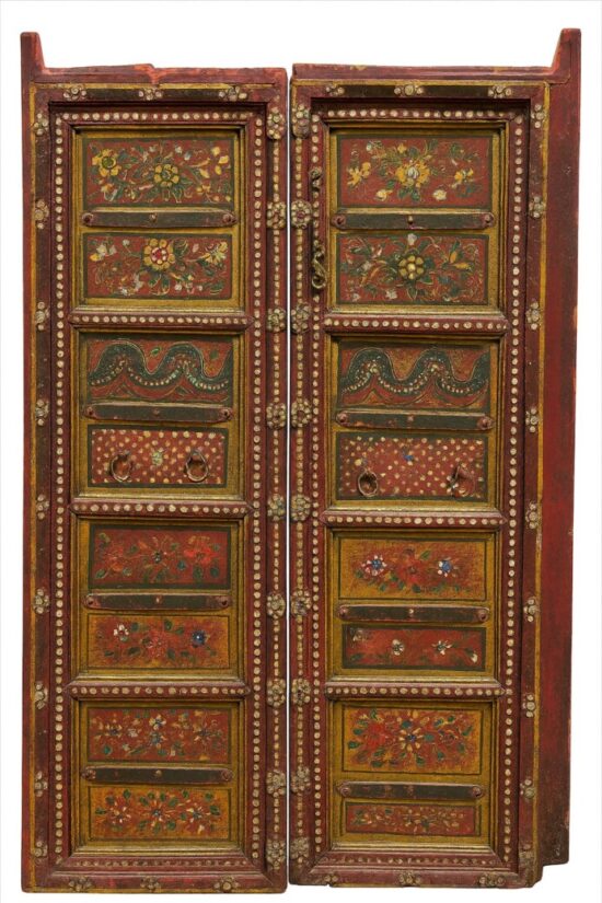 These types of painted doors were traditionally used in Rajasthani havelis, temples, and heritage homes, where they symbolized protection, prosperity, and cultural pride. Each painted panel is unique, featuring detailed floral and geometric artwork, showcasing the mastery of Indian artisans.
