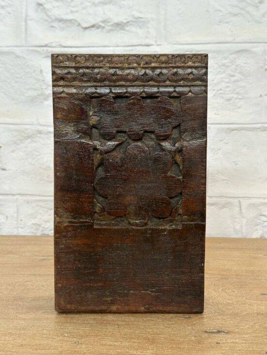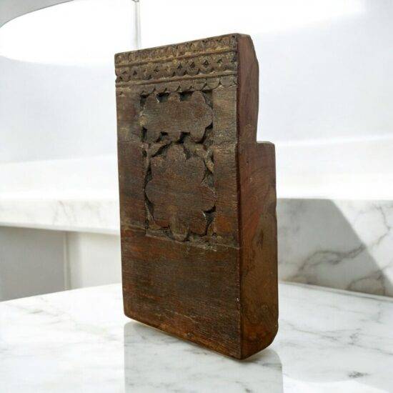 Add timeless charm to your space with the Riya Antique Teak Wood Block, a genuine vintage piece featuring detailed hand-carved floral and geometric designs. Made from solid aged teak wood and over 60 years old, this rare architectural salvage block showcases traditional craftsmanship and a rich, natural patina developed over decades.