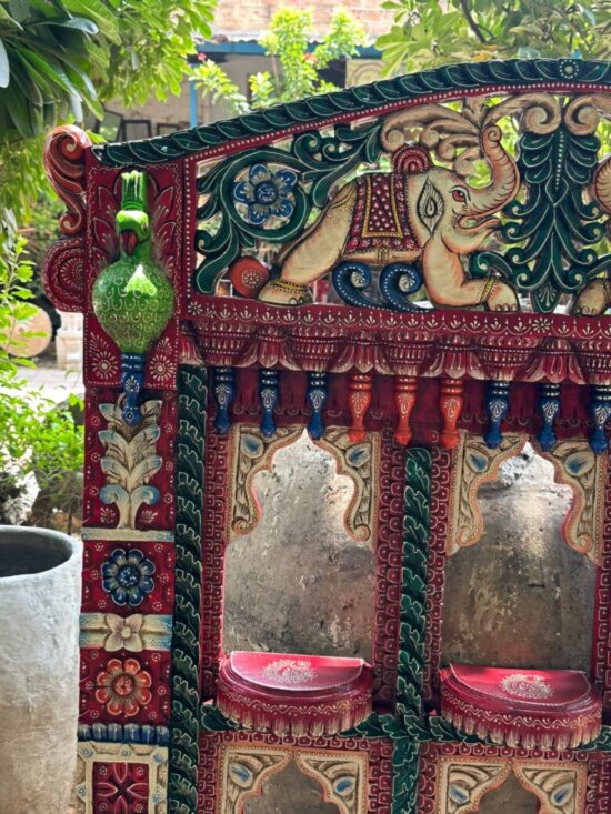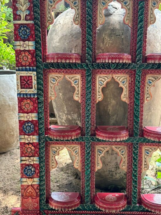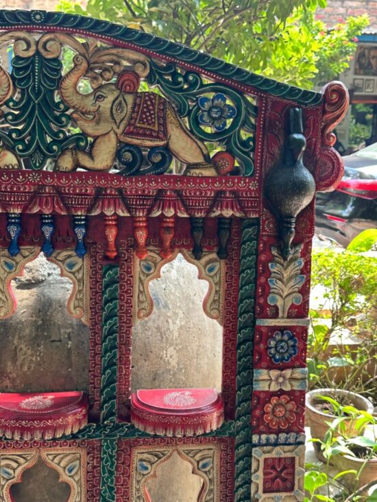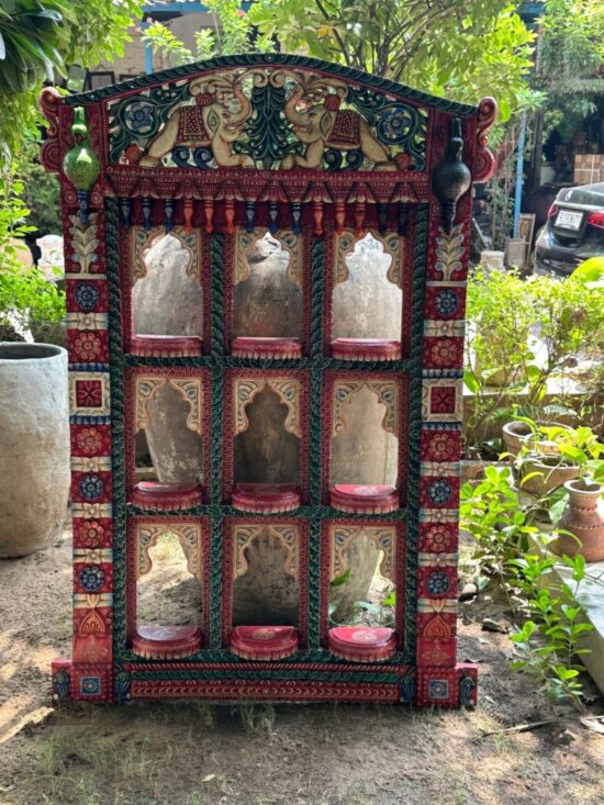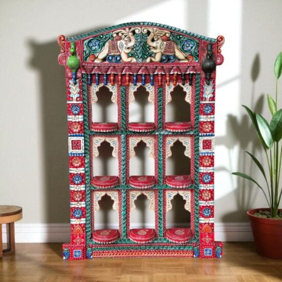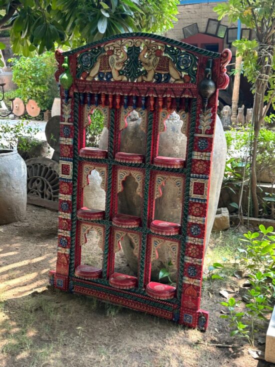 The intricate carvings, vivid colors, and cultural symbolism make it an eye-catching addition to any wall. Traditionally, Jharokha panels were used as decorative windows in palaces and havelis of Rajasthan, and today they are prized as unique home décor pieces.
