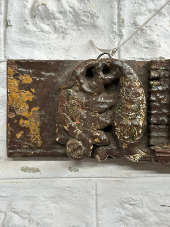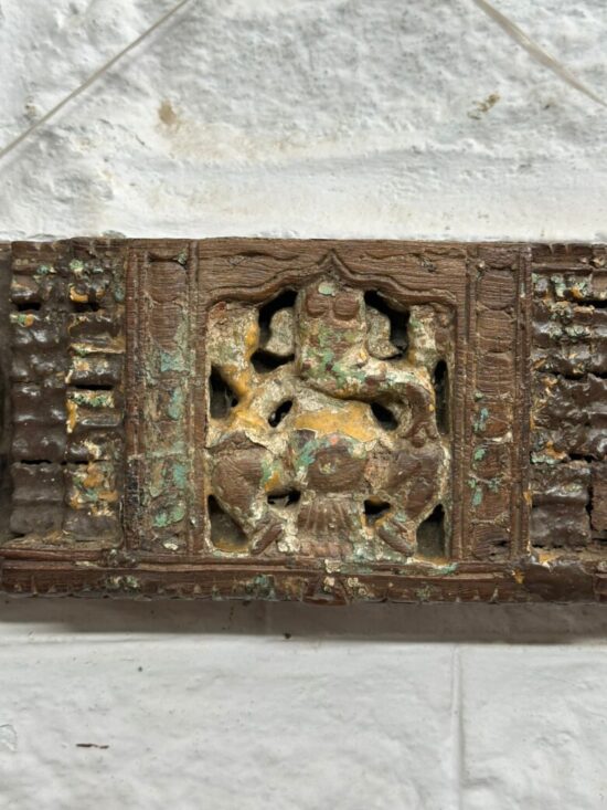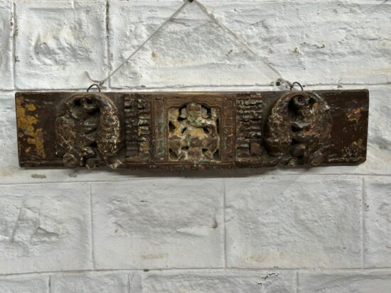 Crafted from solid hardwood, the panel displays intricate hand carving and carries a beautiful natural patina developed over more than a century. Lord Ganesha, the remover of obstacles and the bringer of good fortune, is the central motif—making this both a spiritual and decorative piece.