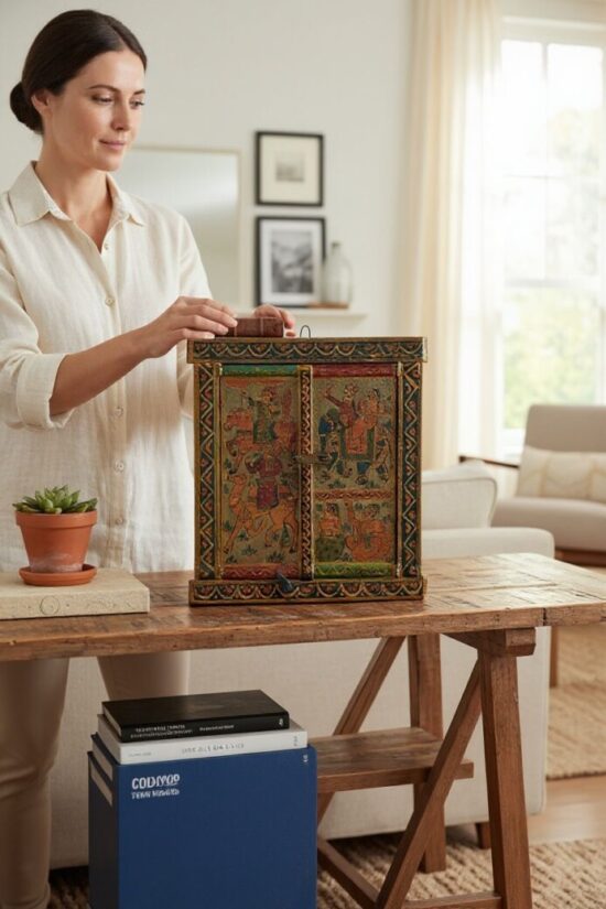 The hinged construction and original latch add character, making it a functional relic turned decorative art.