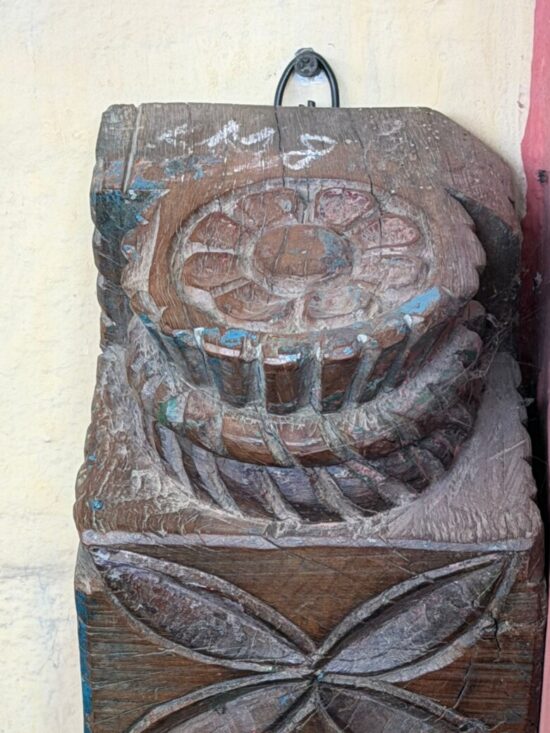 Now repurposed as a decorative wall accent, this solid teak piece carries a rich patina and centuries-old charm. The floral motifs and geometric carvings add a rustic yet elegant touch — perfect for bohemian, traditional, or eclectic interiors.