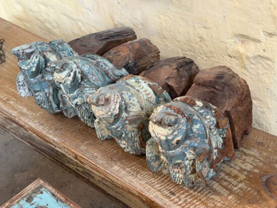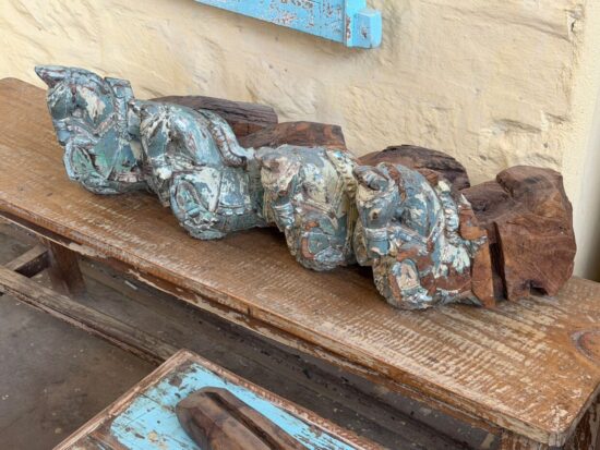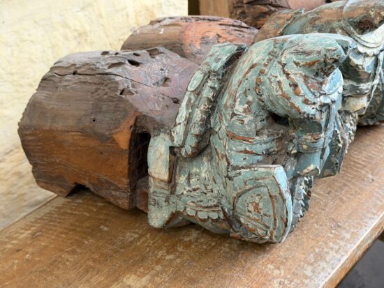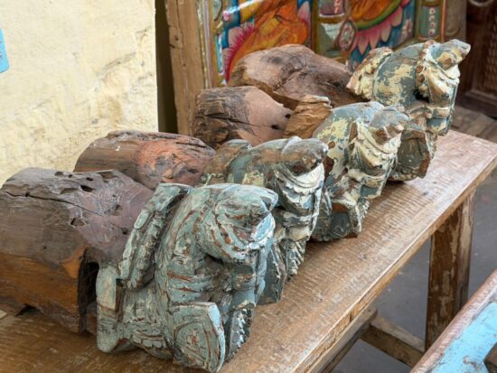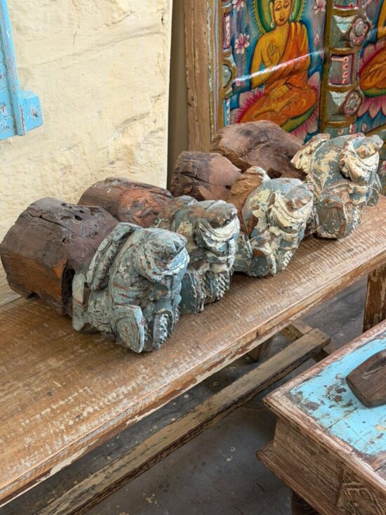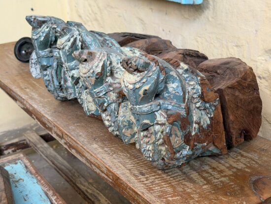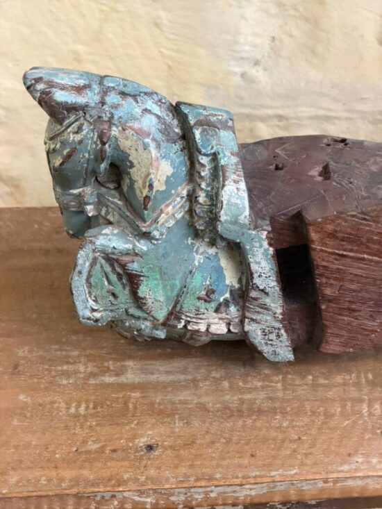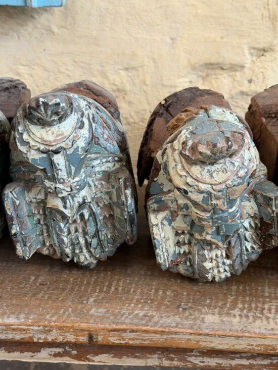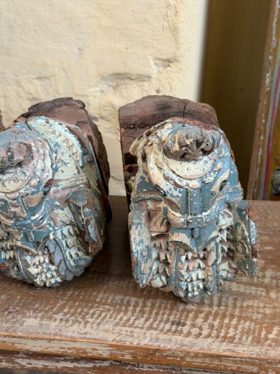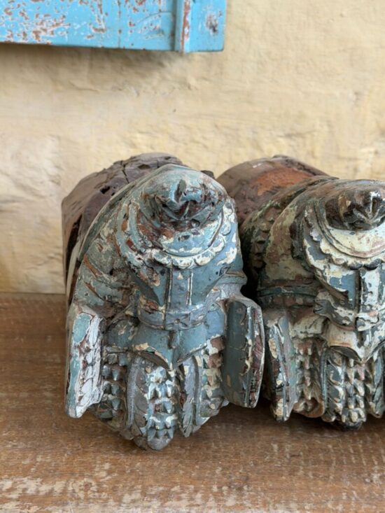 Originally part of an old haveli (mansion) structure, these corbels once adorned doorways or pillars, supporting roof beams while serving as artistic architectural elements. The aged patina, layers of old paint, and subtle weathering tell stories of history, culture, and time.