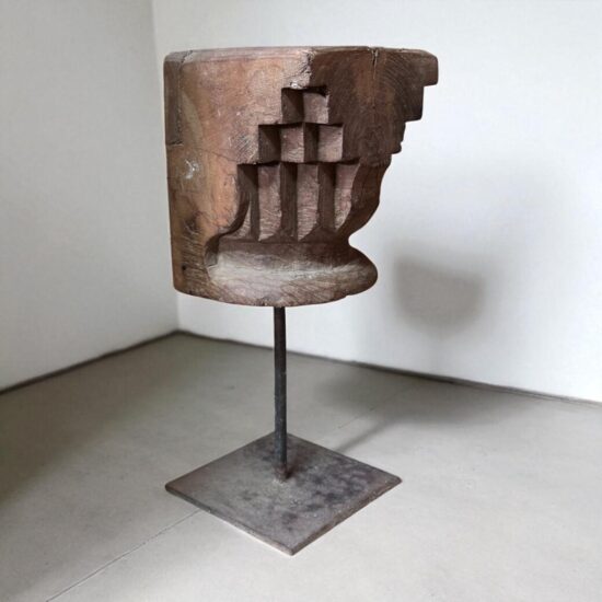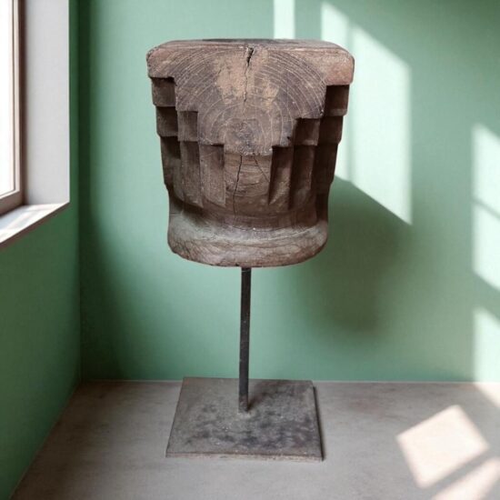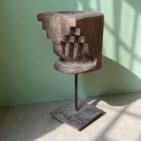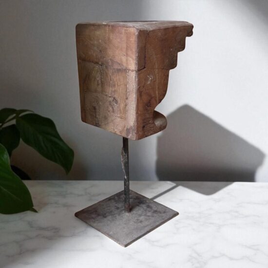Once part of a historic pillar or beam, this architectural salvage has been thoughtfully mounted on a custom iron stand to highlight its organic curves, geometric carvings, and spiritual simplicity. Perfect for wabi-sabi decor, Japandi homes, or rustic-modern interiors, this sculpture also works beautifully as a candle holder, altar accent, or mantel display.