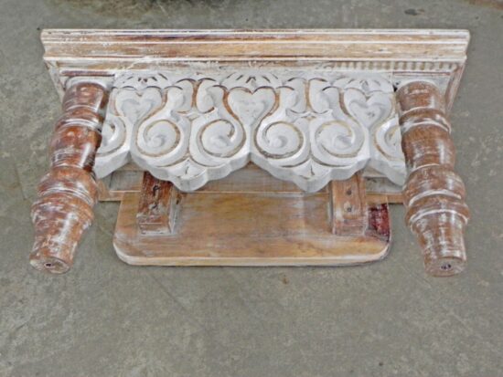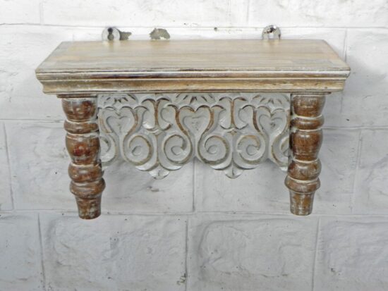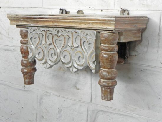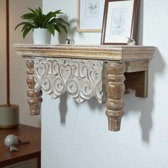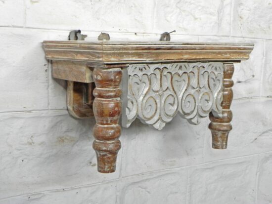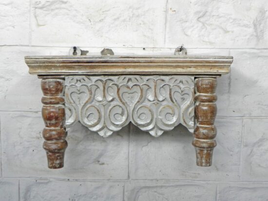 Bring timeless elegance and rustic charm to your interiors with this Carved Wooden Wall Shelf with Distress Finish.
