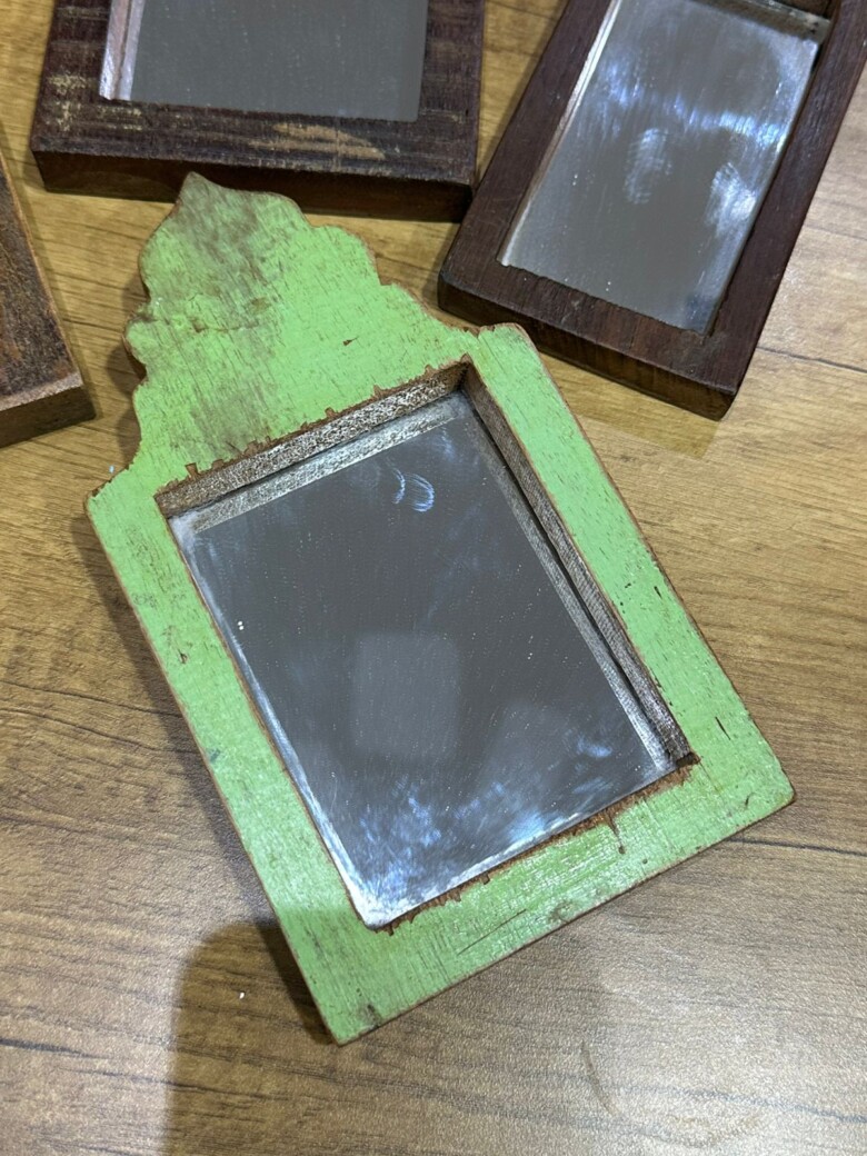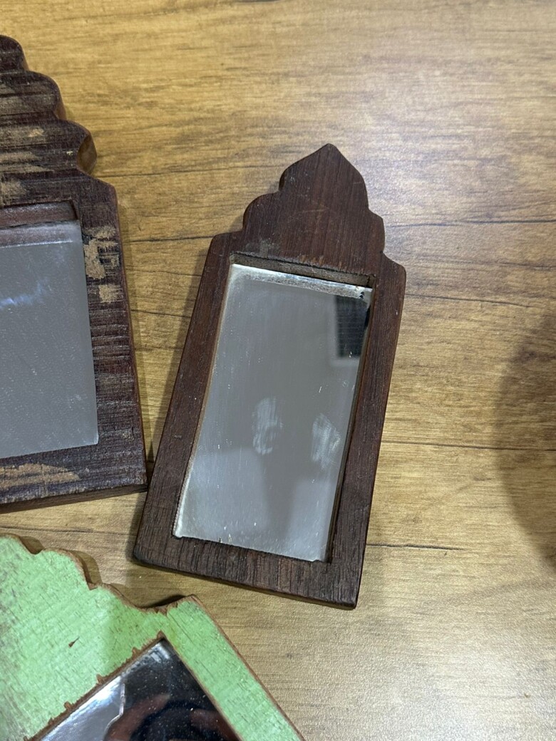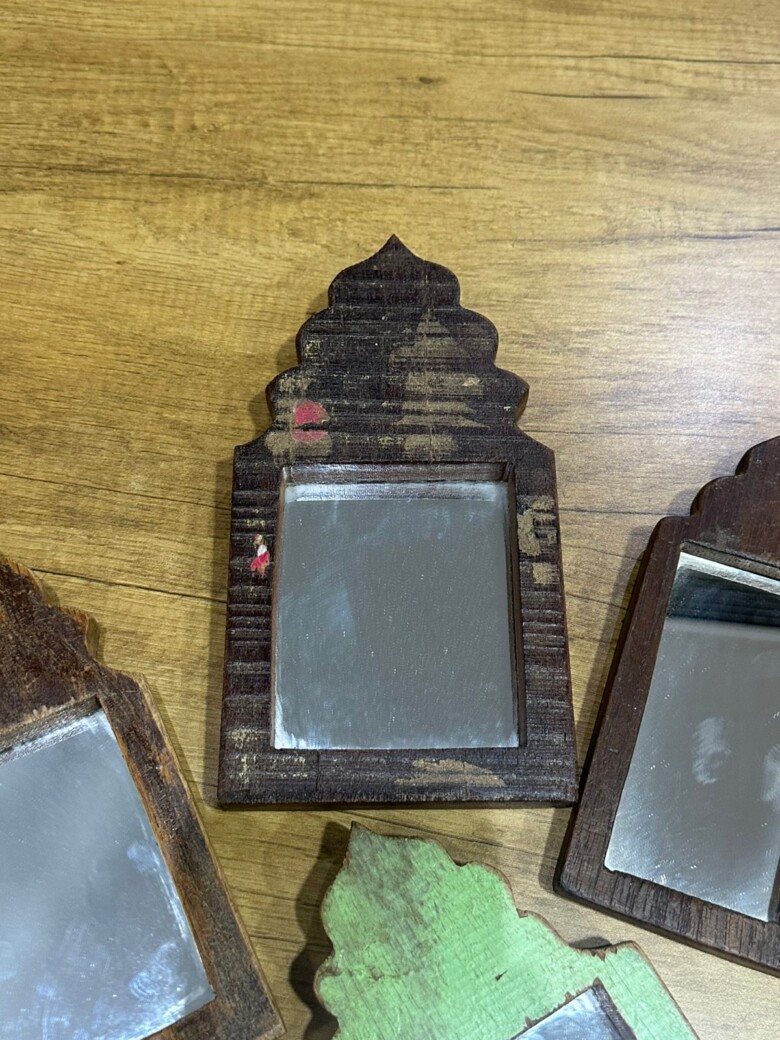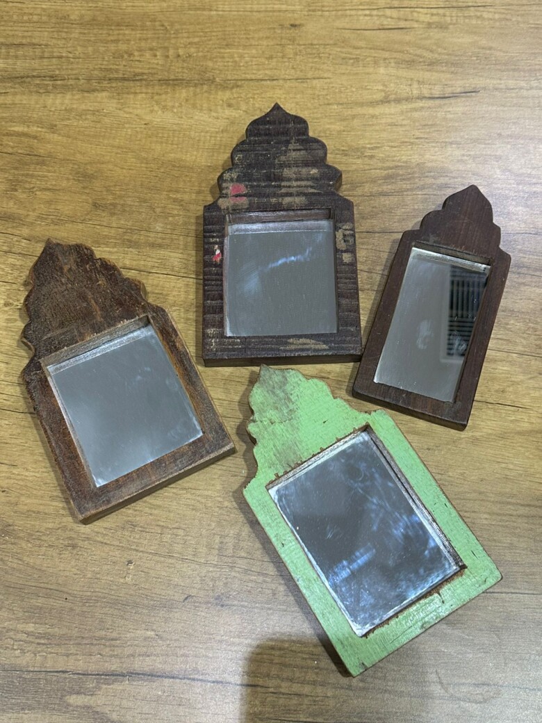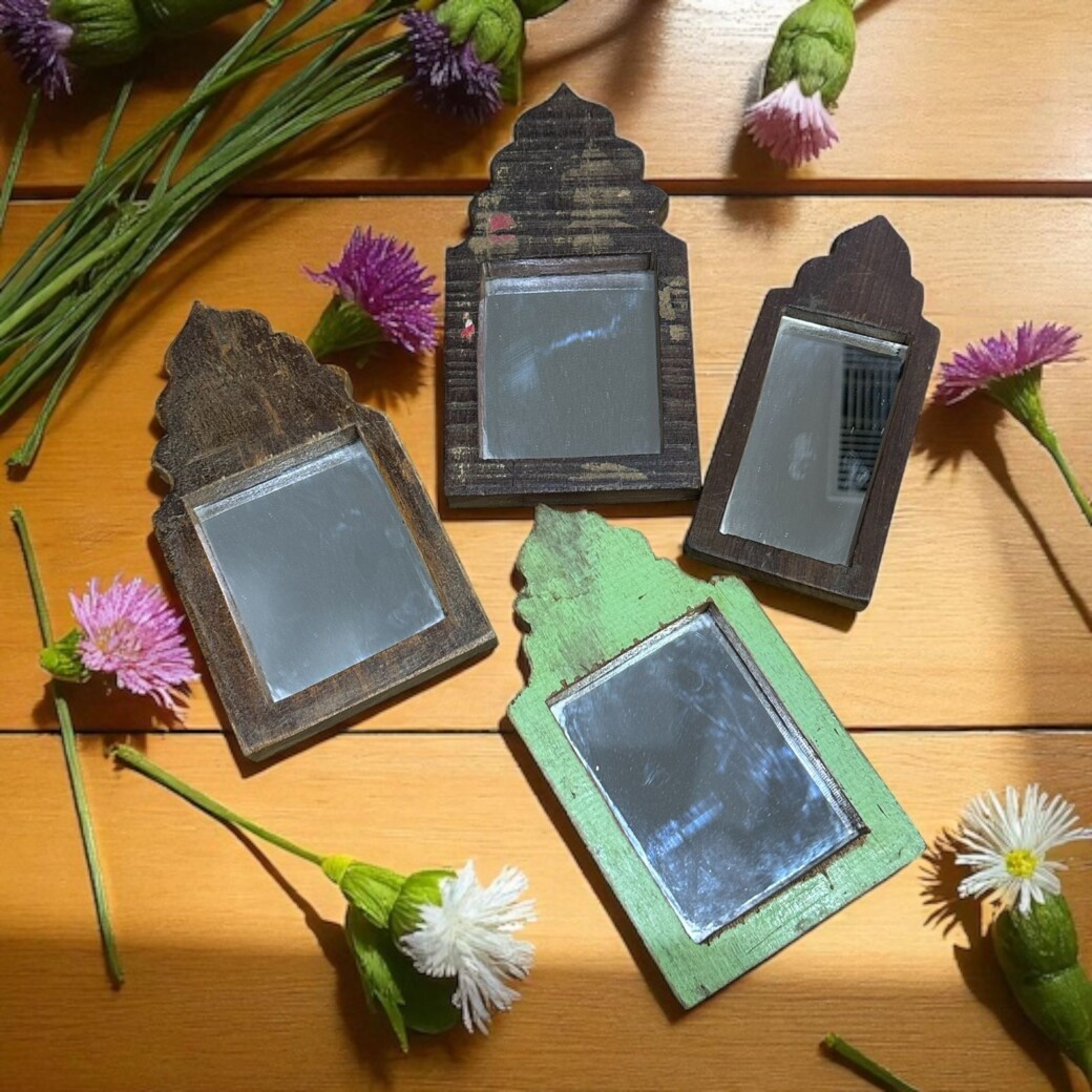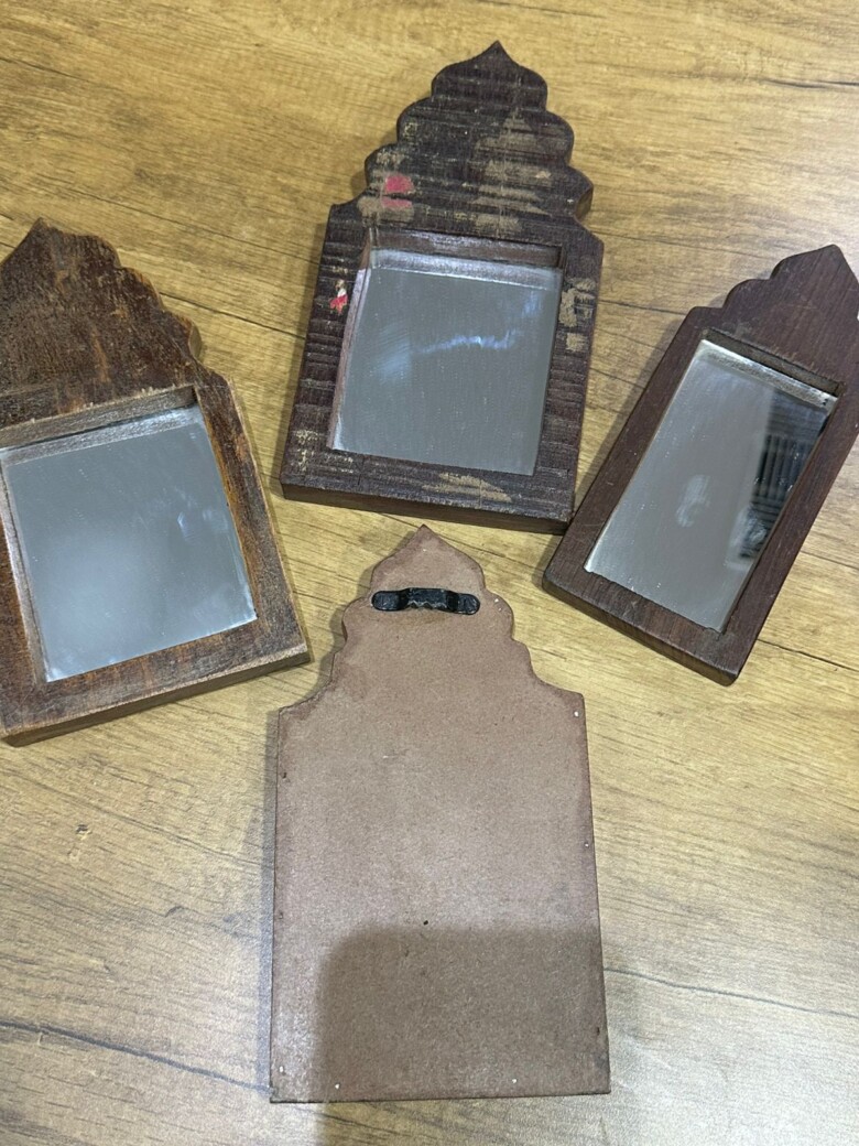 These handcrafted mirrors are inspired by the traditional jharokha (arched window) designs found in Indian temples and palaces. Each frame features subtle vintage wear, natural wood textures, and unique carved details that showcase their authenticity and age.